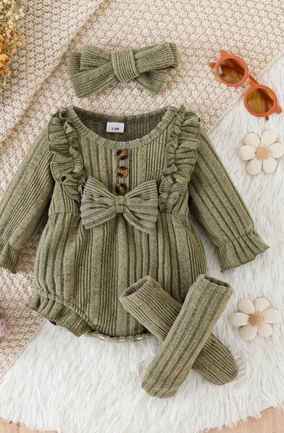Ruffled Lace, Bow, Headband, and Socks - Soft, Warm, and Cozy