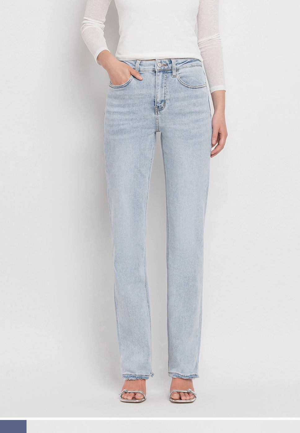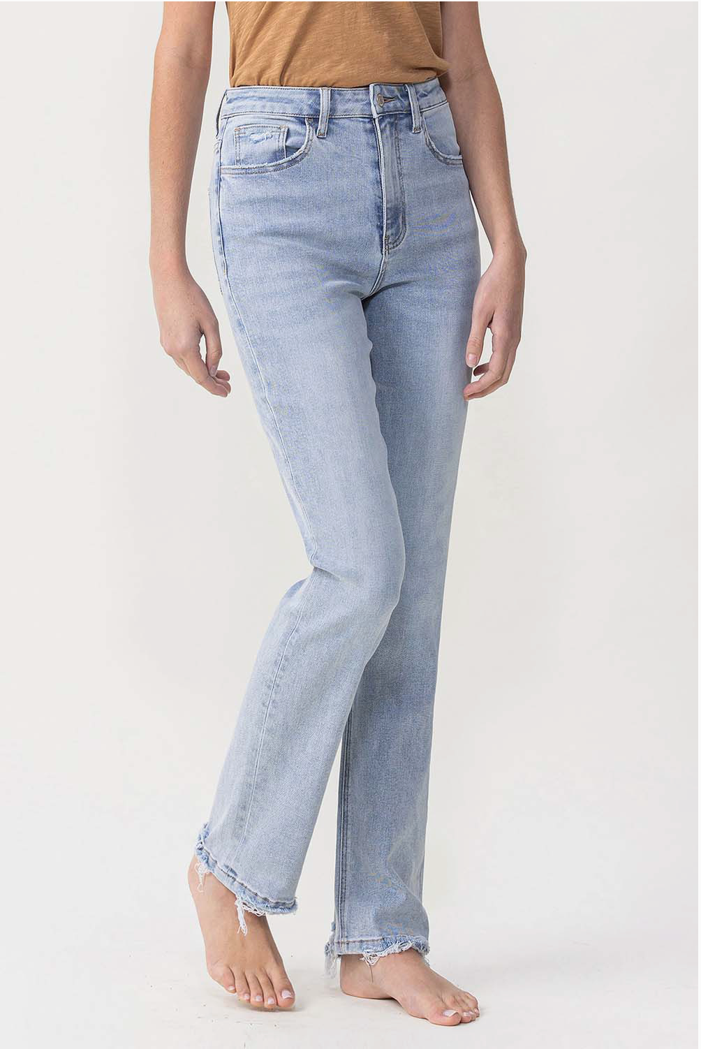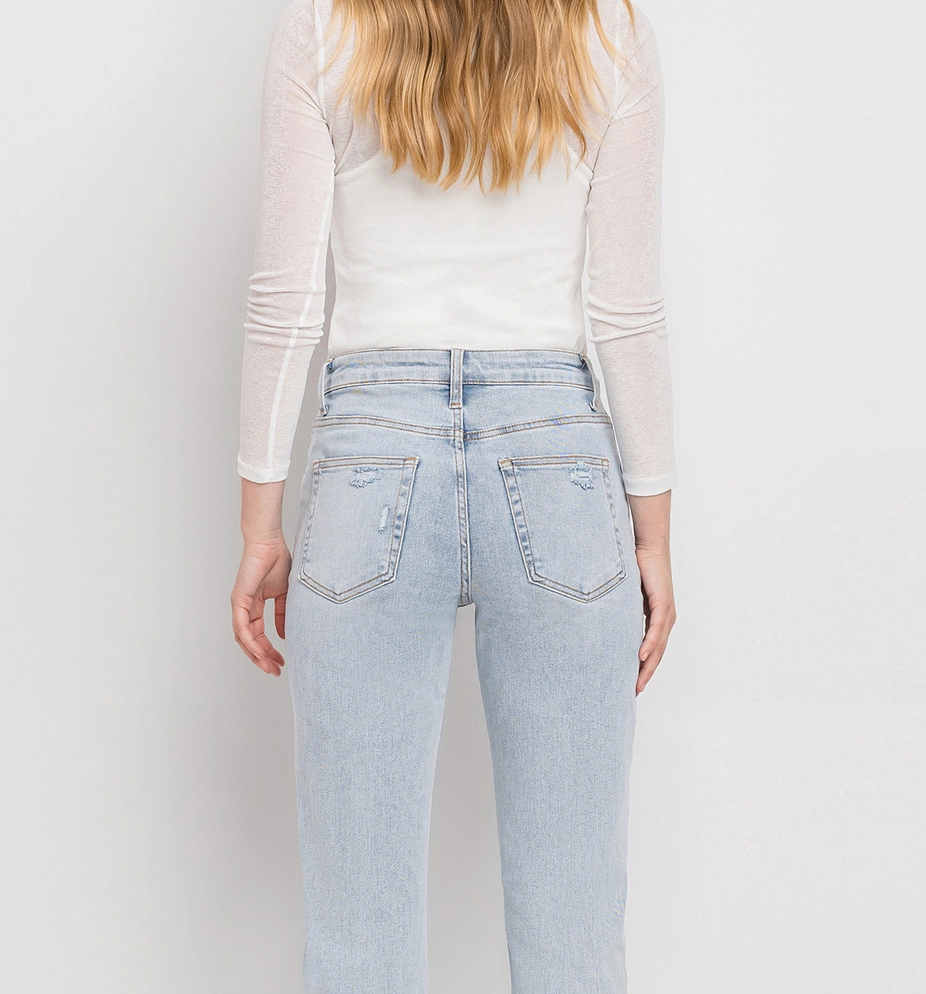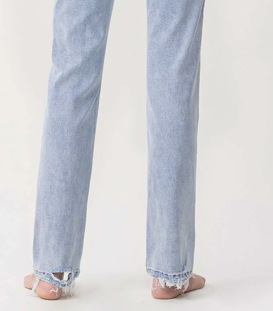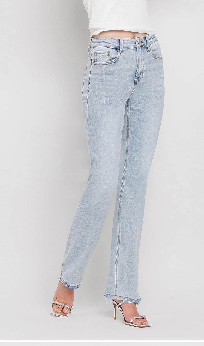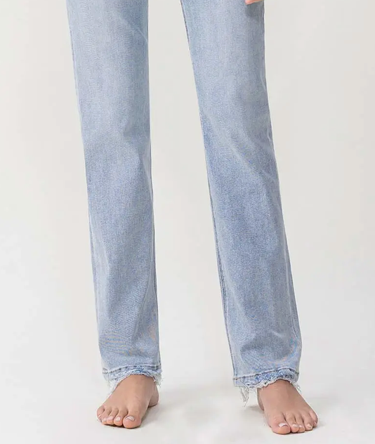COMFORT STRETCH DENIM, SUPER HIGH RISE WAIST, 90'S VINTAGE STYLE, HEM DETAILS, FULL LENGTH, STRAIGHT JEANS 1032