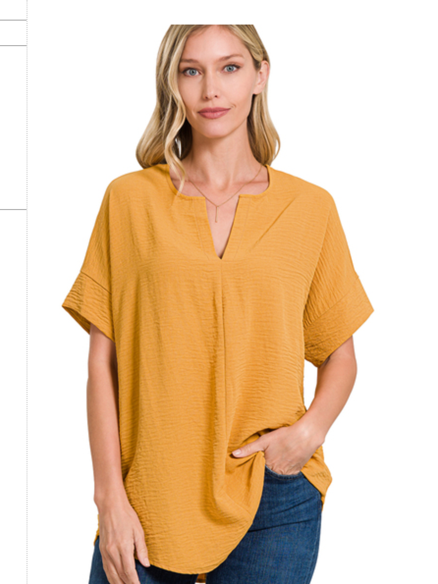 WOVEN AIRFLOW SPLIT NECK SHORT SLEEVE TOP