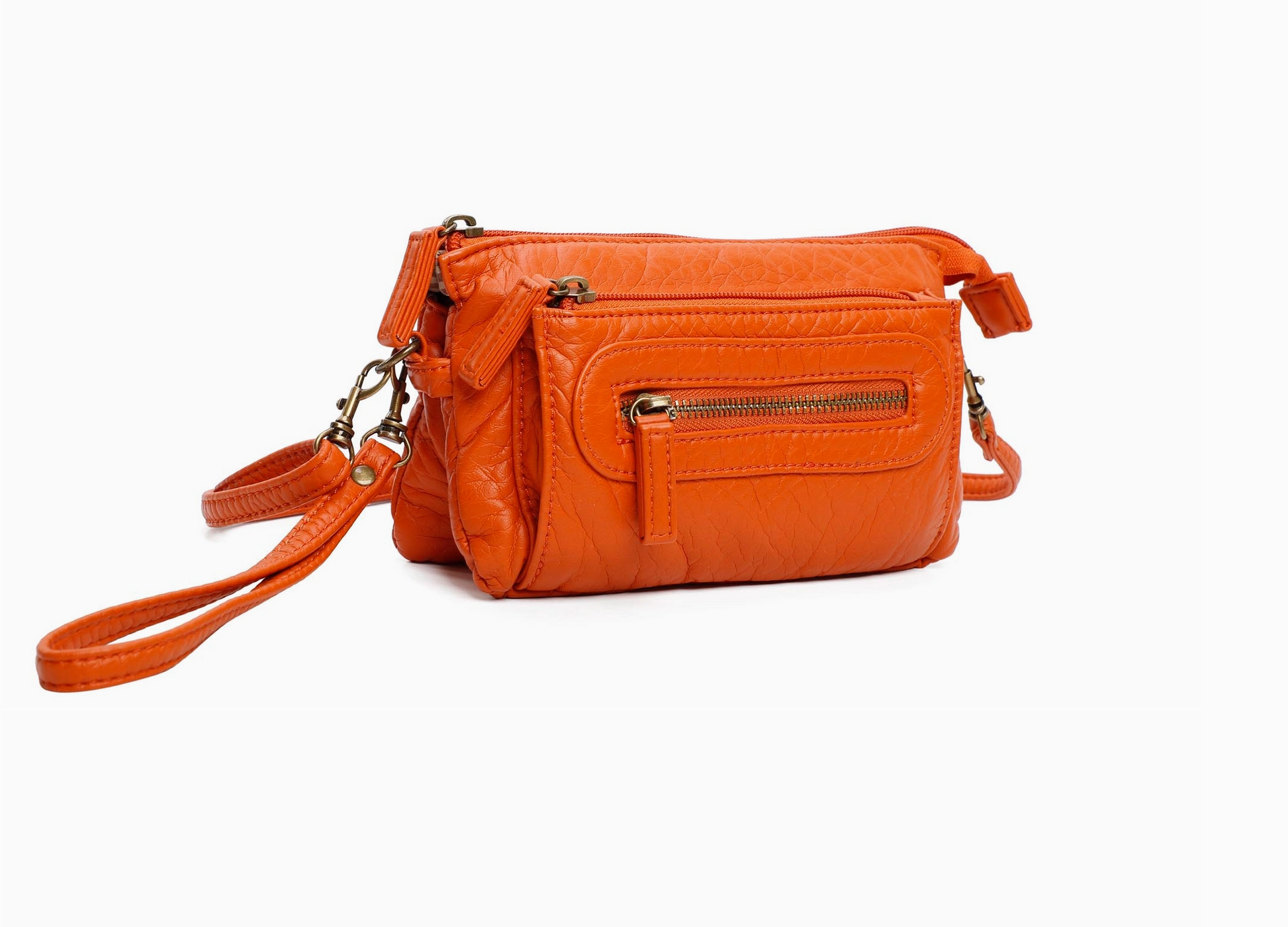 With versatile carrying options to suit your mood and style, this three way handbag is perfect for use from day to night. The Anita Three Way Crossbody Wristlet Bag is made from soft vegan faux leather and features an extra-small shape with brass tone hardware accents, multiple pockets for storage, a detachable wristlet strap, and an adjustable, detachable crossbody strap. Offering carrying options as a wristlet, clutch, or crossbody bag, this handbag features a well-organized design with a zippered closure, a divided interior, a back wall zipper pocket, and card slots to hold credit cards and photo ID. Two exterior pockets and a back pocket offer added storage for small accessories.