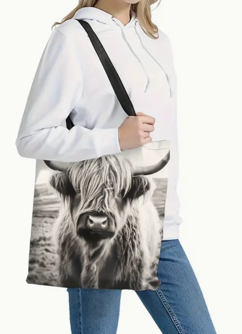 Highland Cow Canvas Tote Bag - Stylish & Durable, Large Womens Shoulder Bag for School, Grocery, Beach