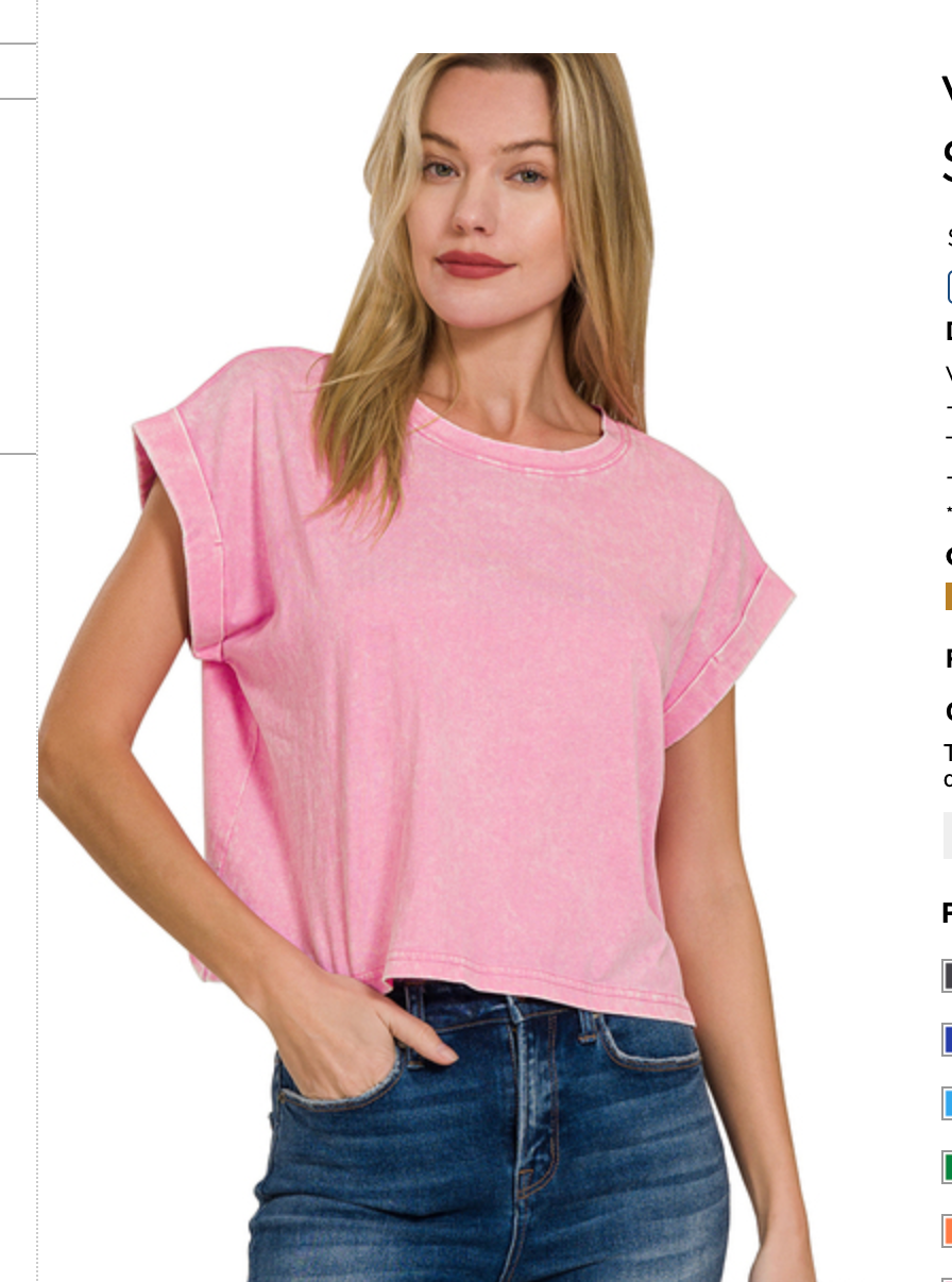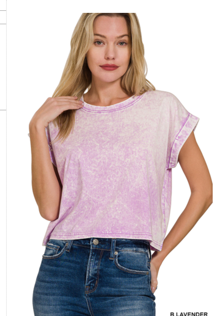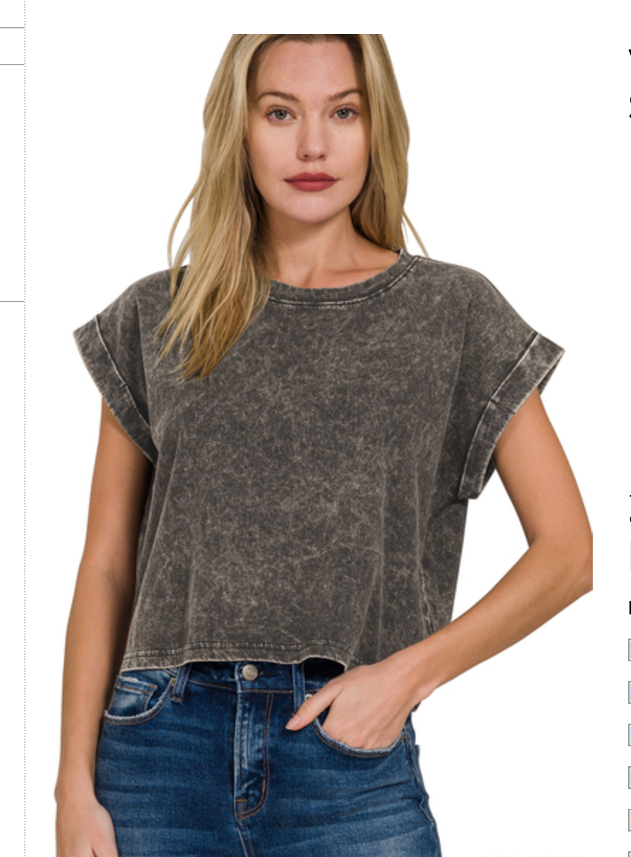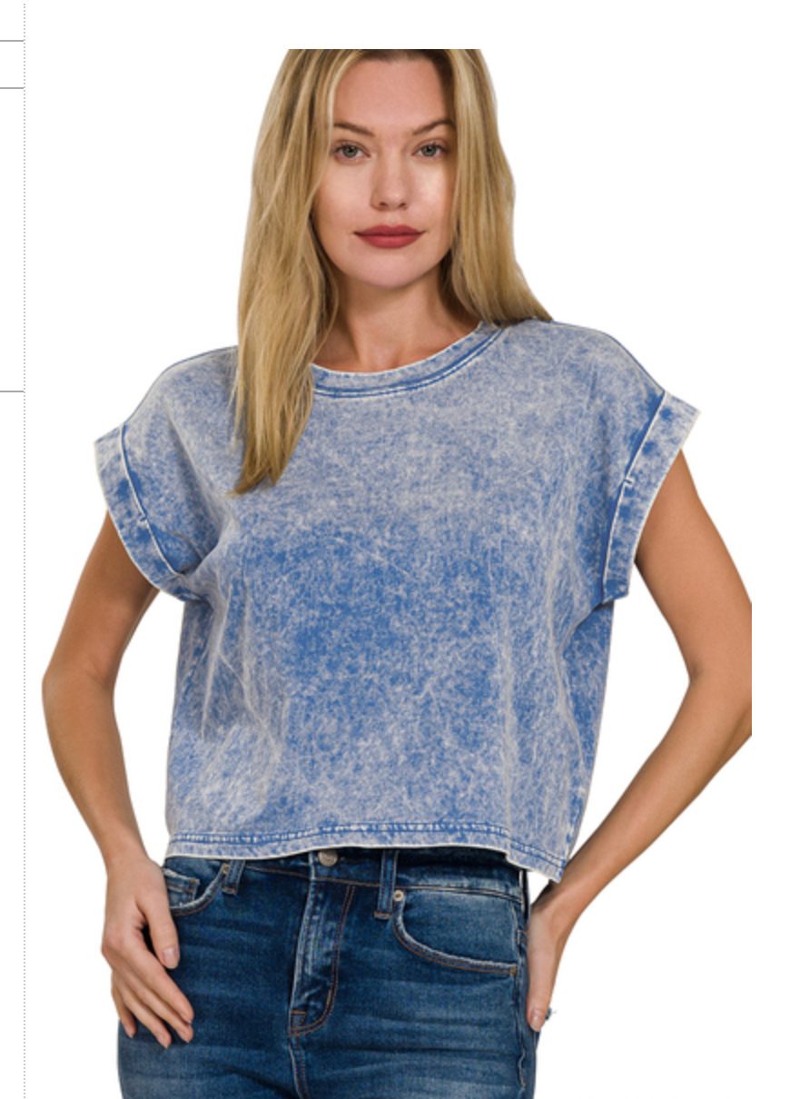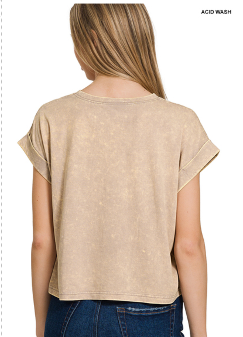 WASHED COTTON CUFFED SHORT SLEEVE TOP