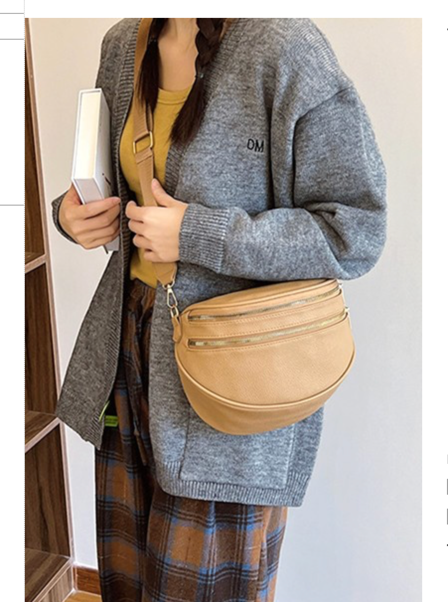 VEGAN LEATHER MULTI POCKET CROSSBODY CHEST BUM BAG