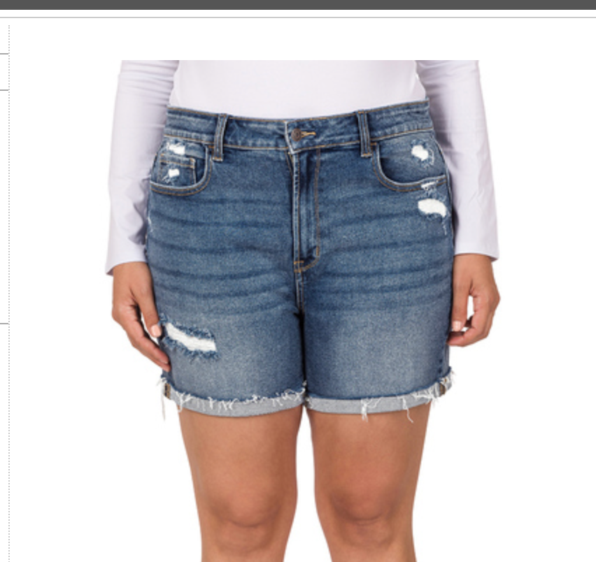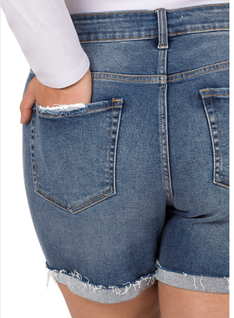PLUS DISTRESSED CUFFED RAW HEM DENIM SHORTS