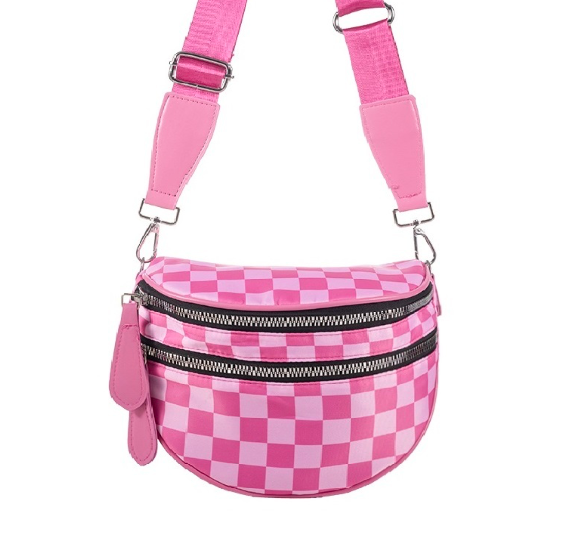 DOUBLE ZIP CRESCENT SLING BUM BAG