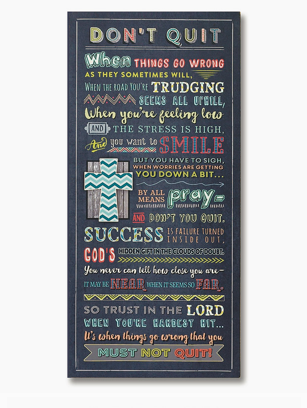 Distressed MDF w/printed facing w/popular encouraging message, 'don't quit', ready to hang,