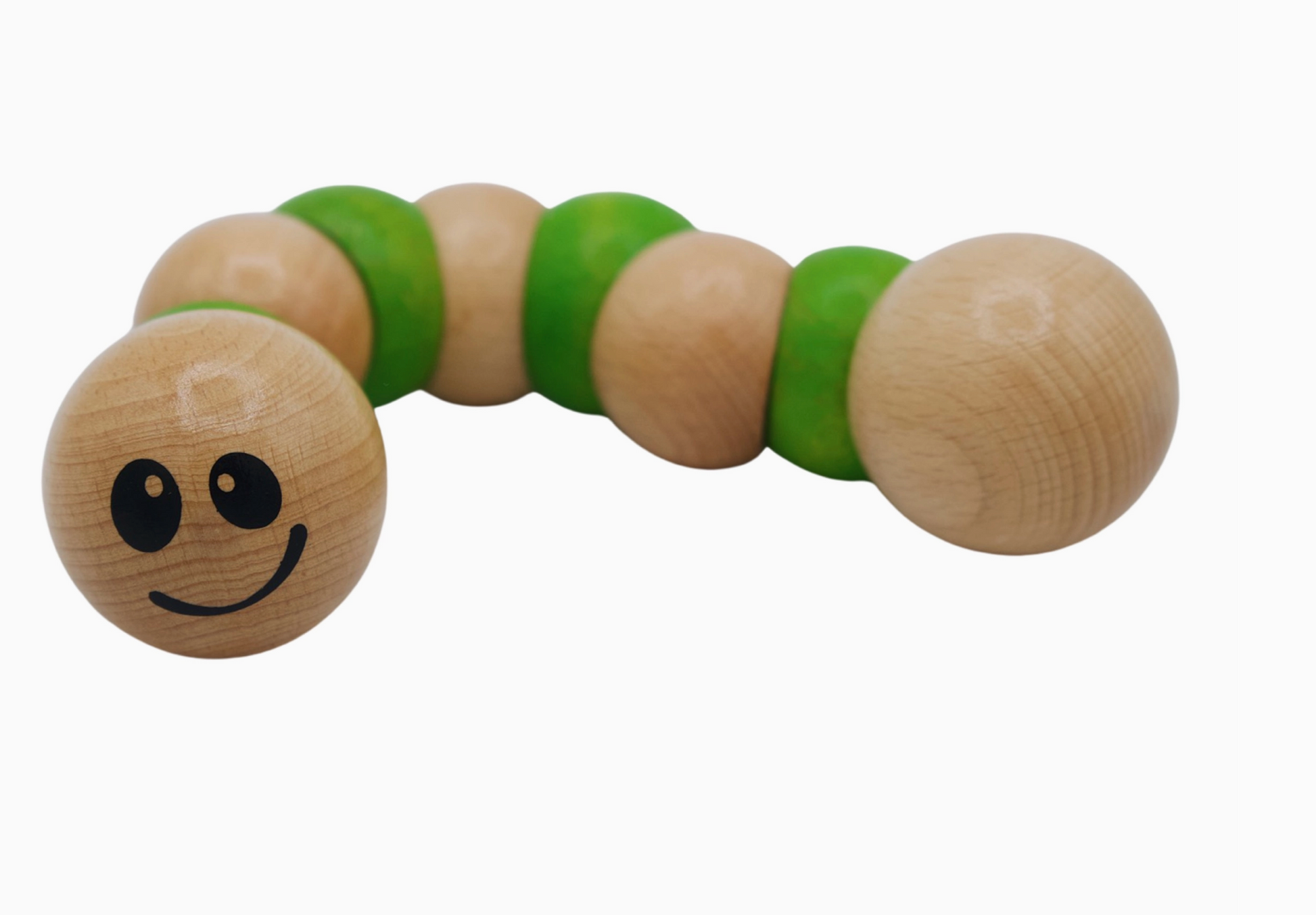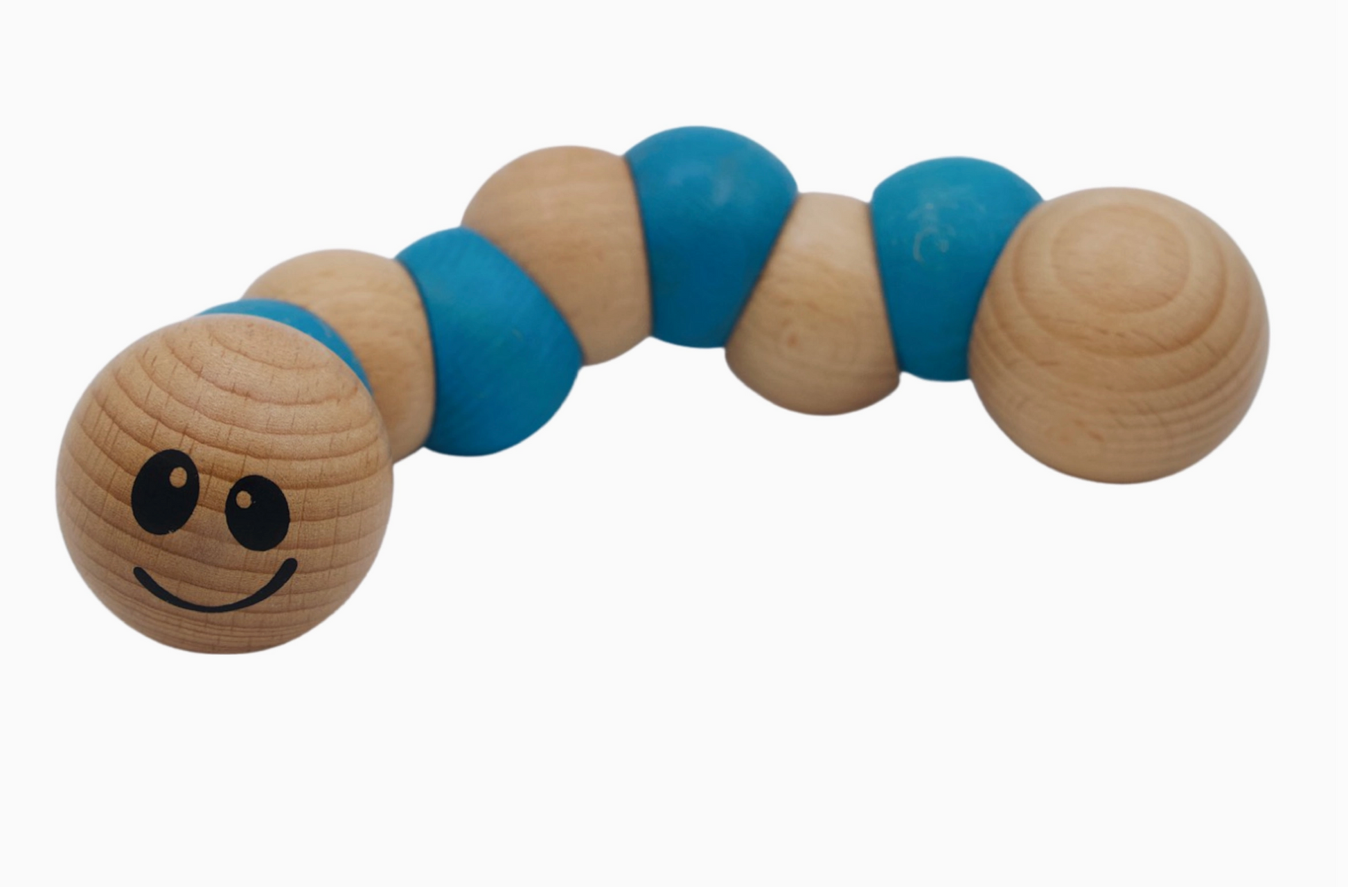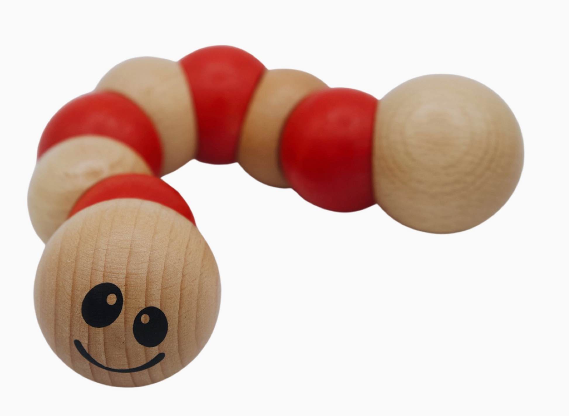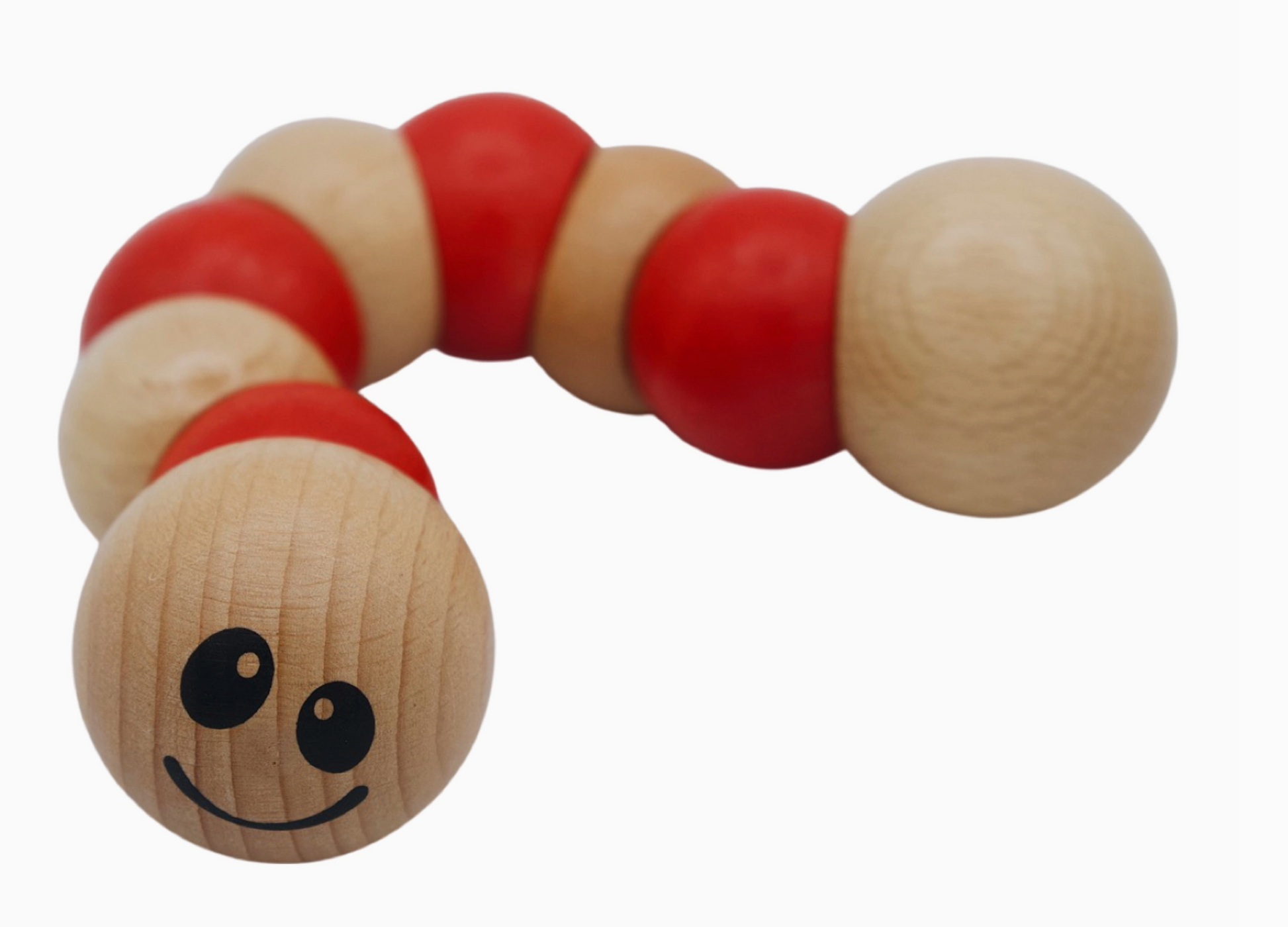 The earthworm toys are great for infant motor skill-building fun. Infants love to grasp, hold, pull, twist, and switch hands with this fun wooden toy. The chunky earthworm toy is made from sustainably harvested rubberwood and finished with water-based stains. Ages 12m+.