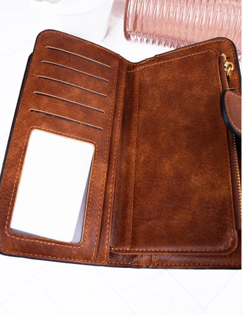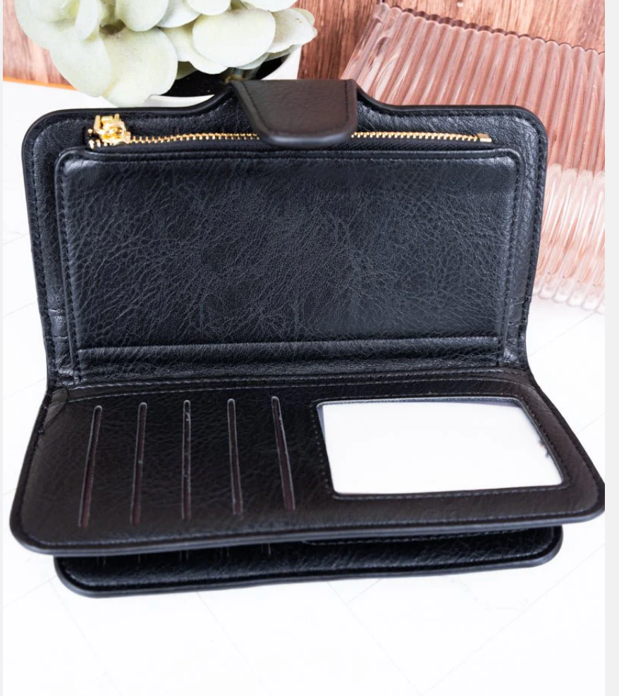Don't just hold your cash and cards, make a statement with our faux leather wallet! Chic and functional, keep your essentials close at hand with this stylish accessory!Faux Leather Construction
