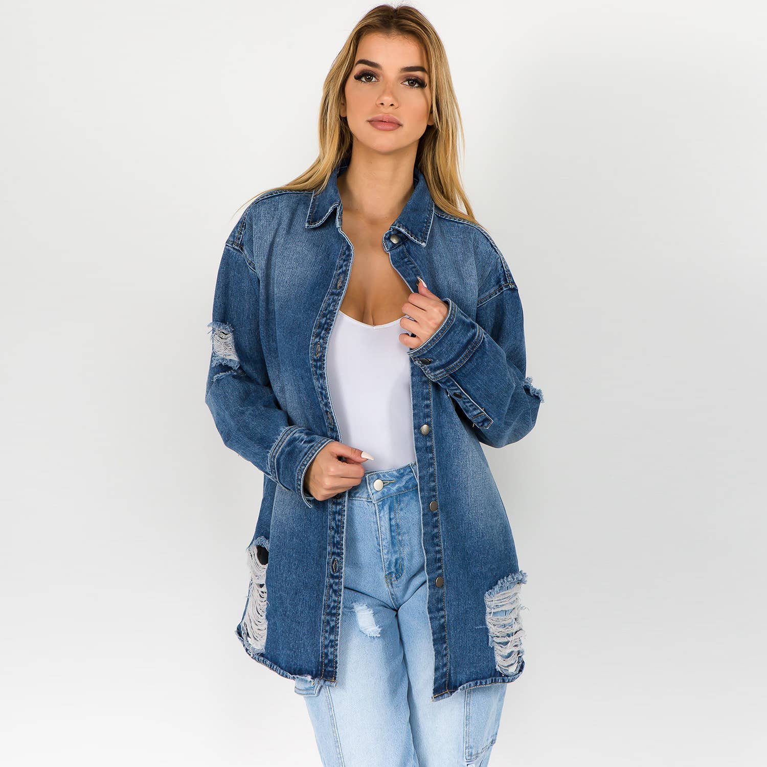 - BUTTON UP LOOSE FIT DENIM SHIRTS WITH FADED DENIM WASH