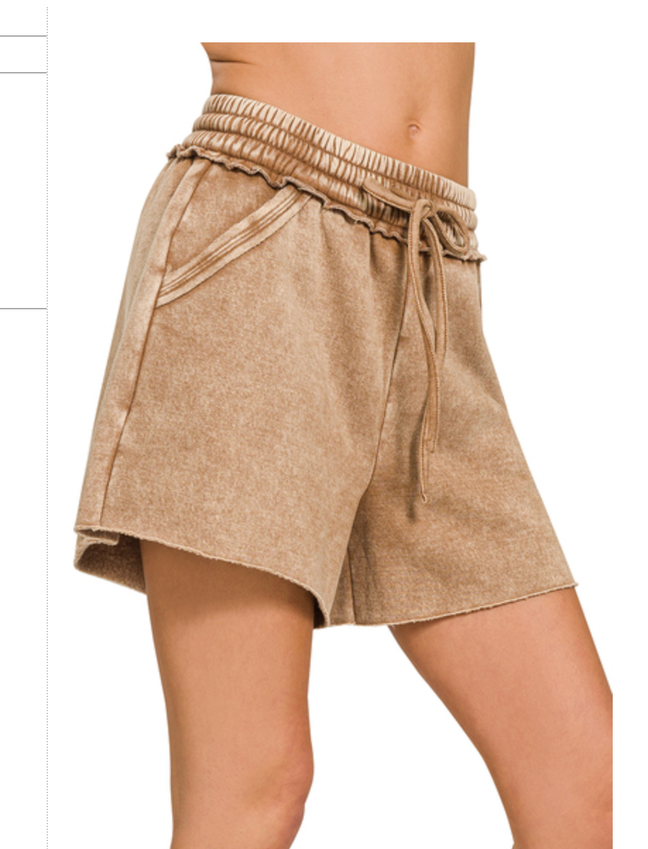 ACID WASH FLEECE DRAWSTRING SHORTS WITH POCKETS