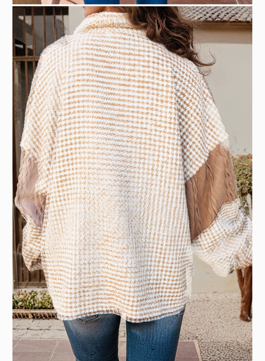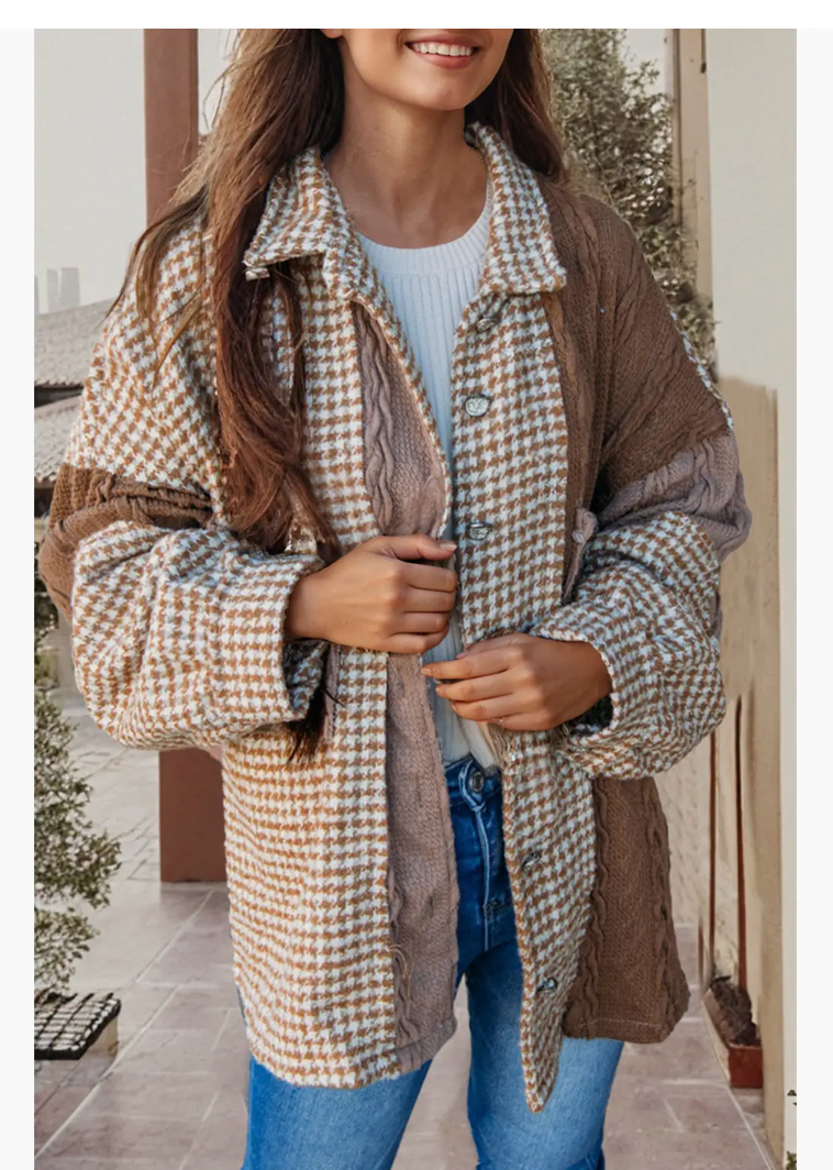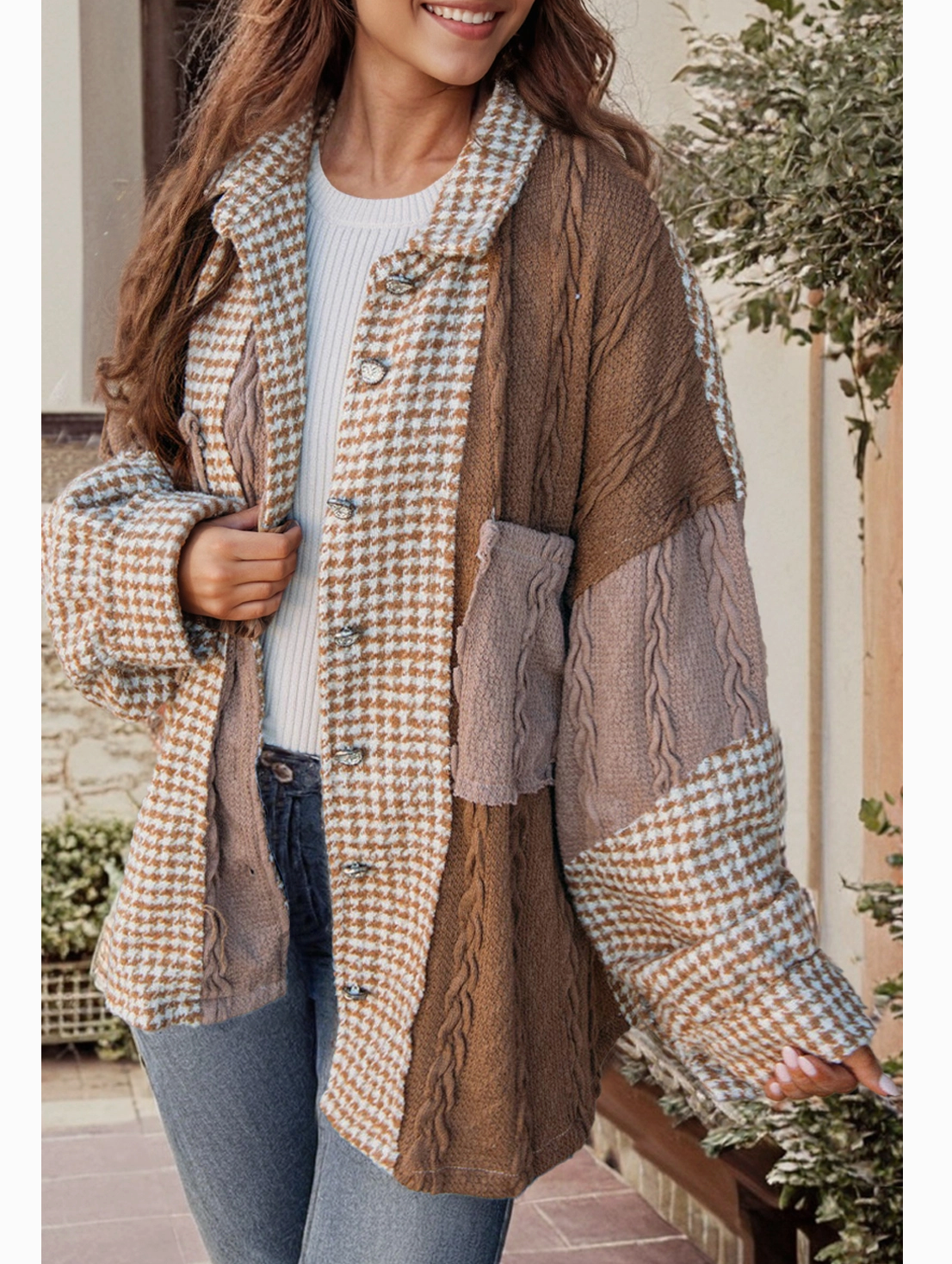 Houndstooth Color Contrast Textured Patchwork Loose Shacket