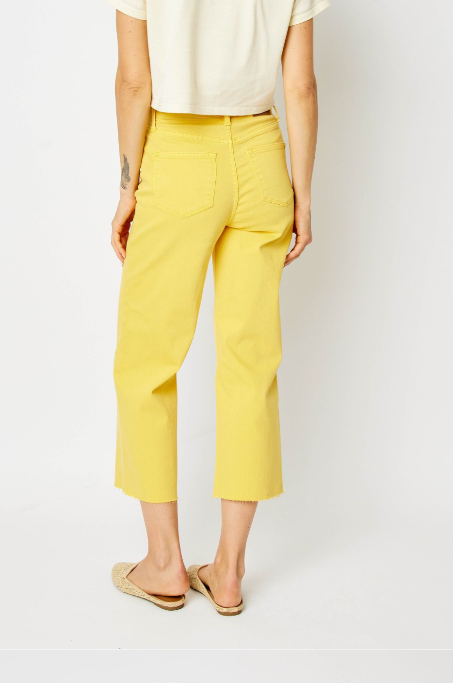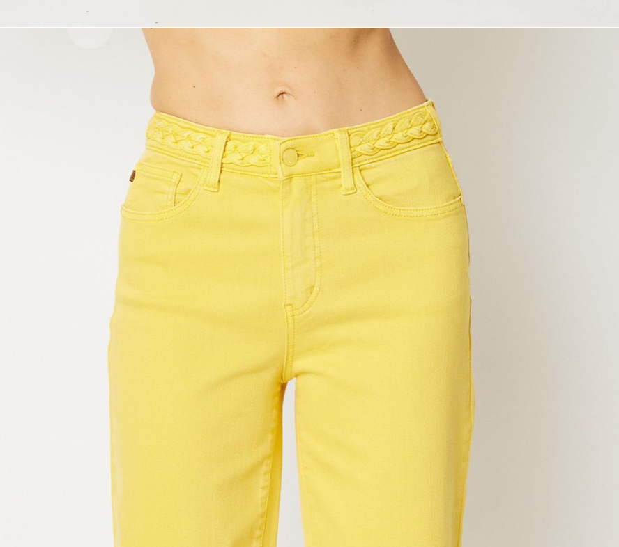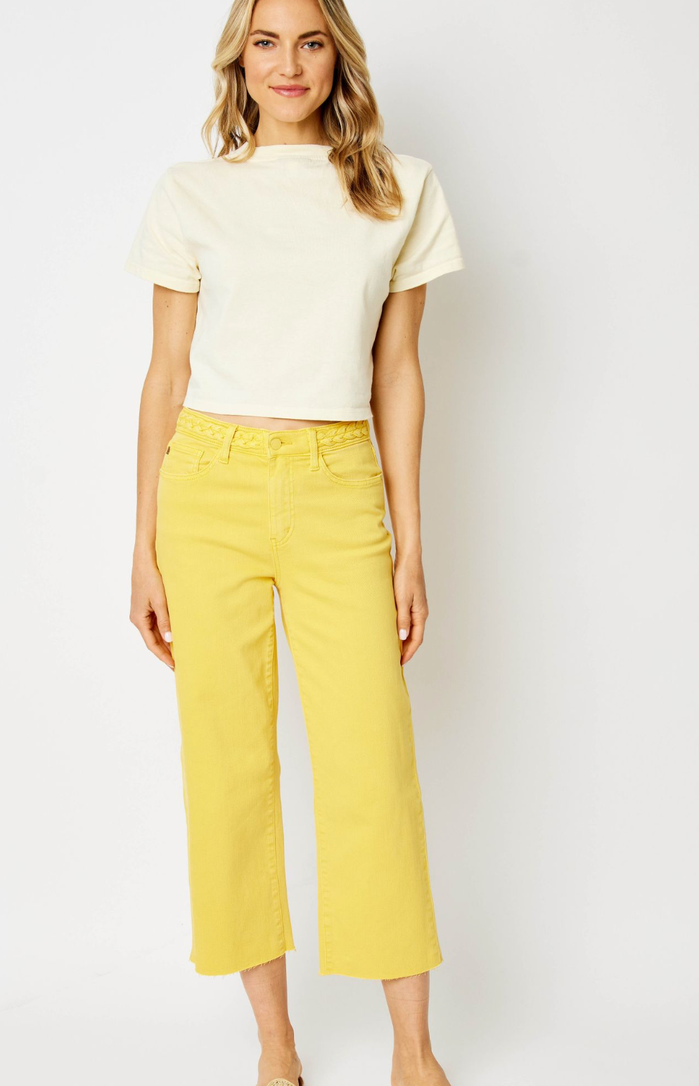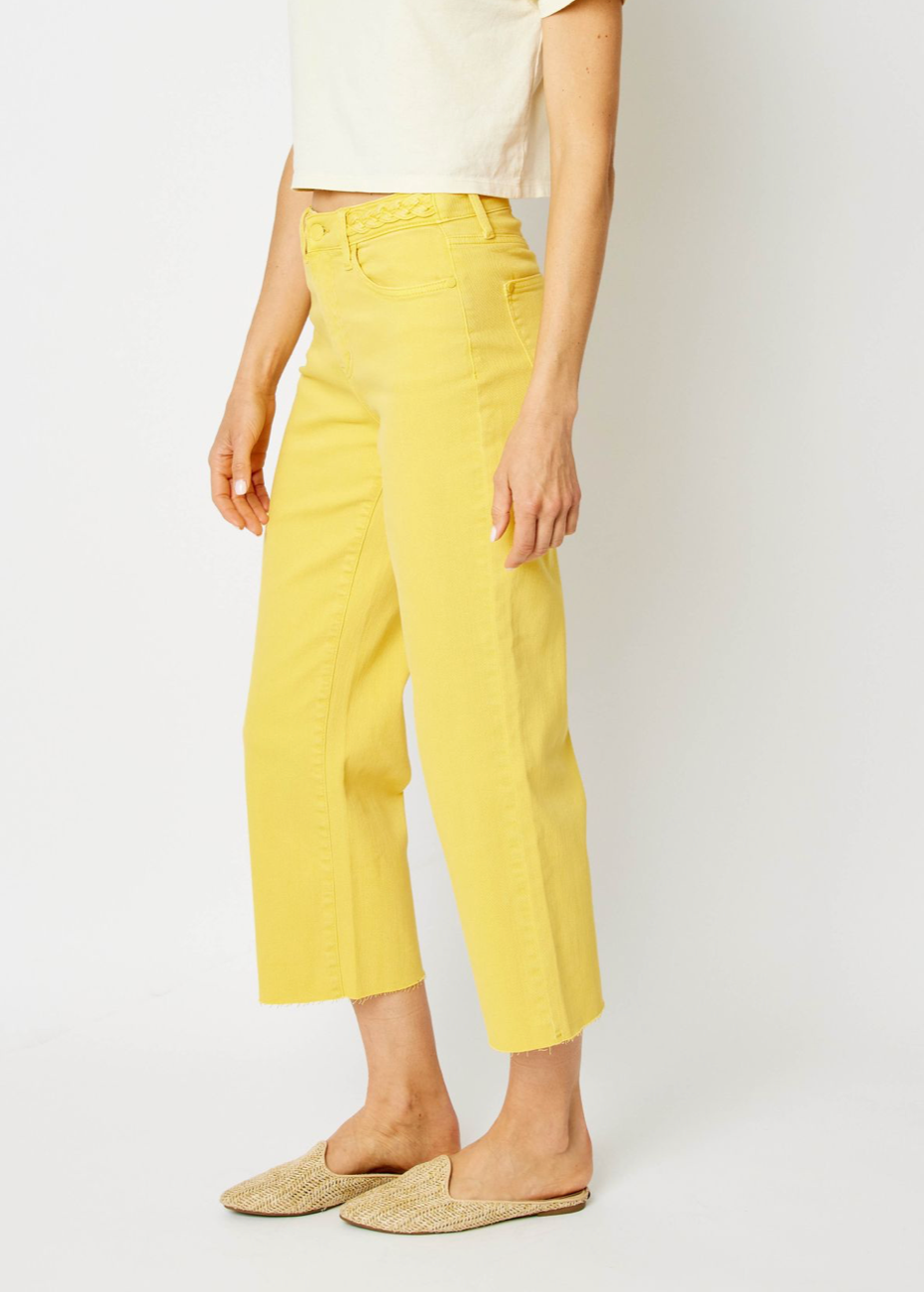 - HIGH WAIST GARMENT DYED BRAIDED WAISTBAND CROP WIDE LEG