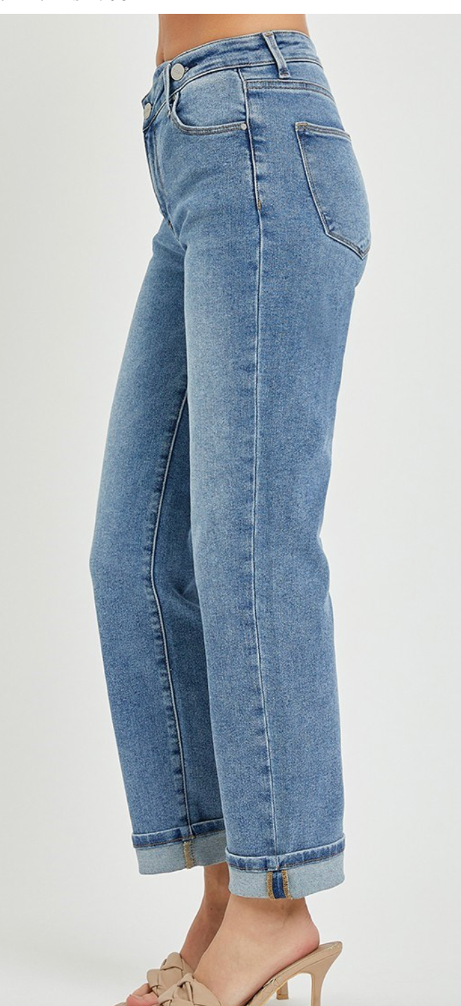 (66)HIGH RISE CROSS OVER BOYFRIEND JEANS