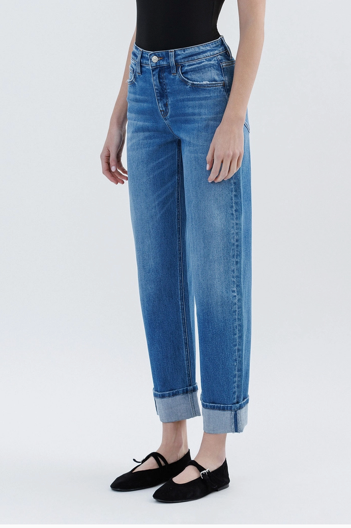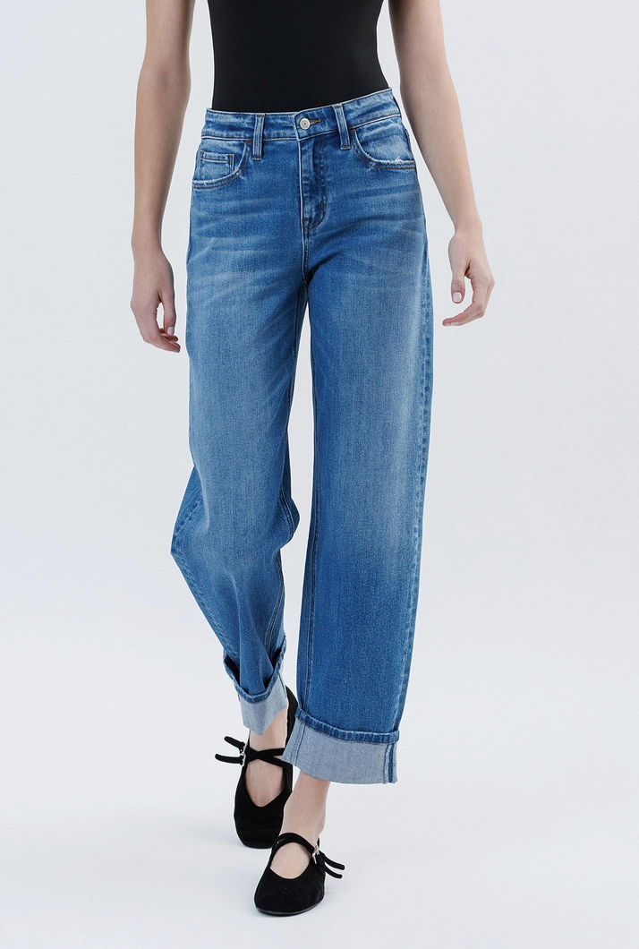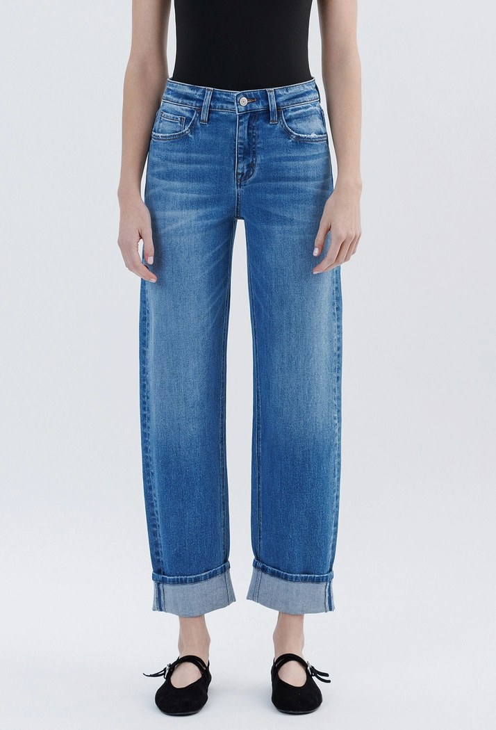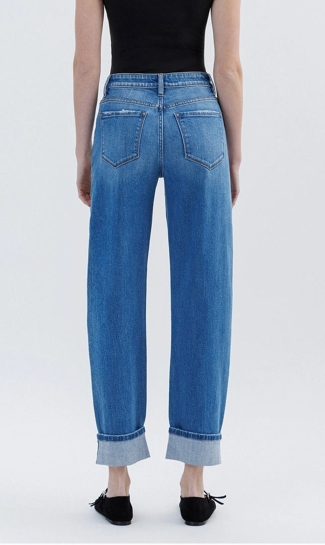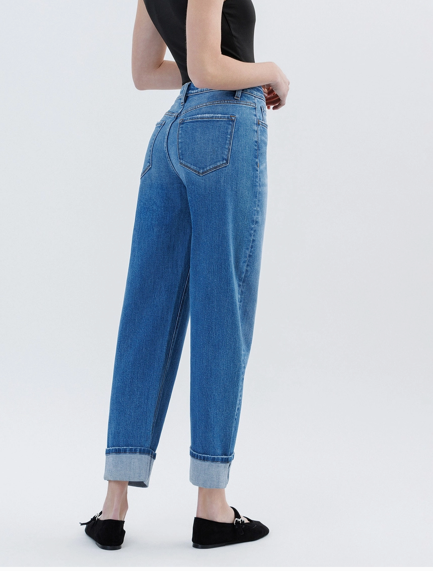 High rise cuffed barrel leg jeans