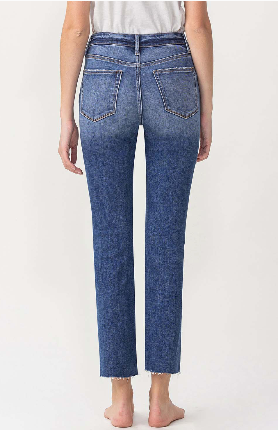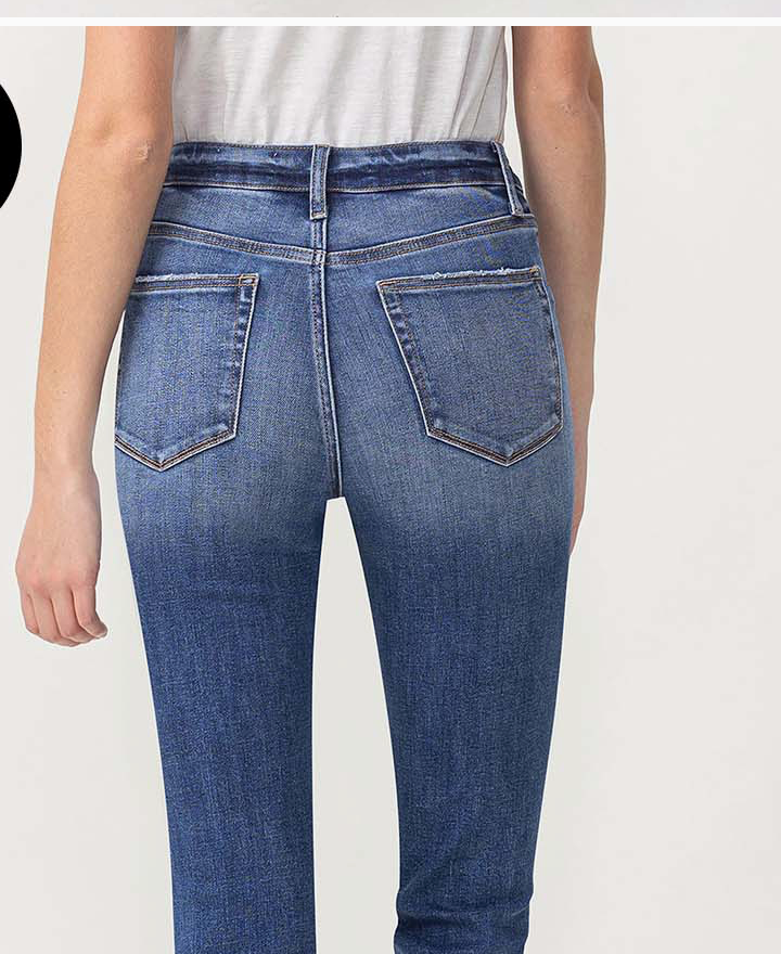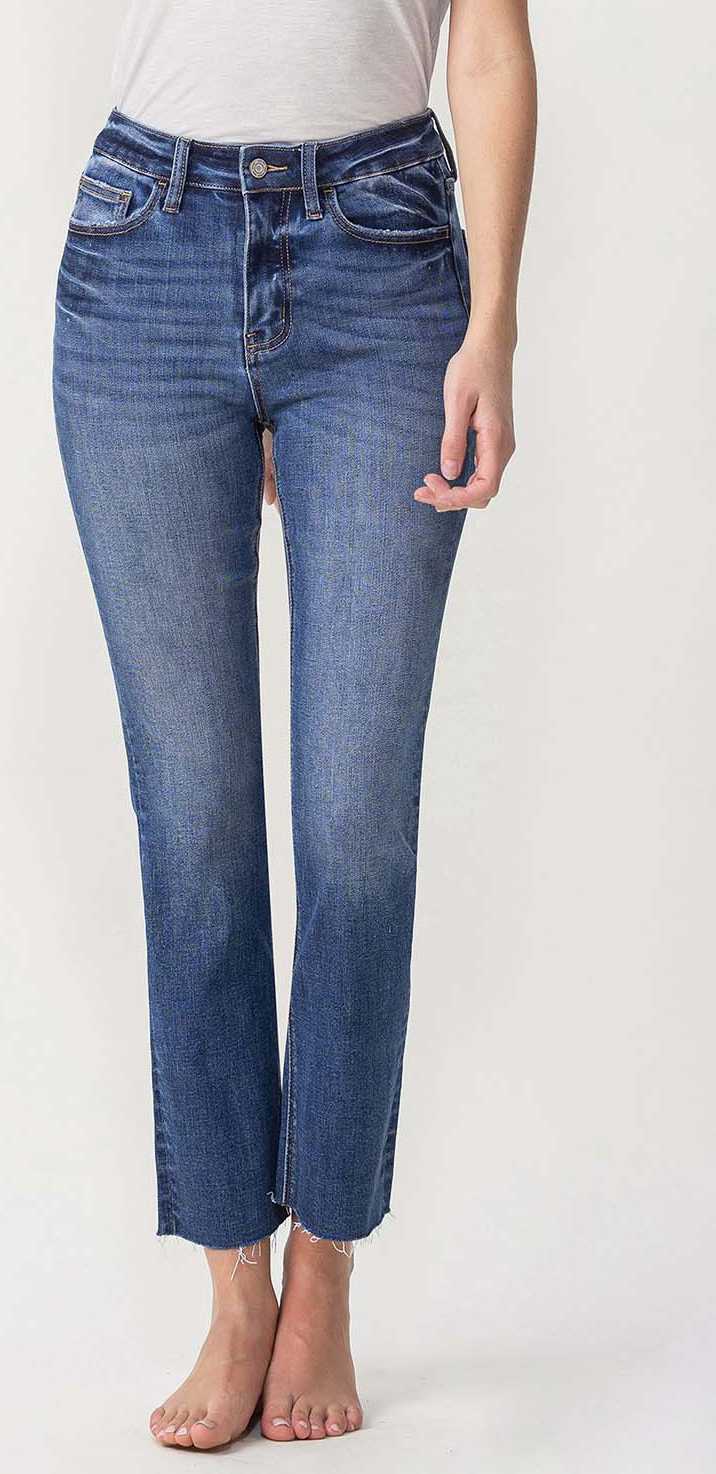 (48)Comfort stretch denim, ankle length, straight fit, raw edge, clean cut hem, super high-waisted and fitted through the hip and thigh 1028234