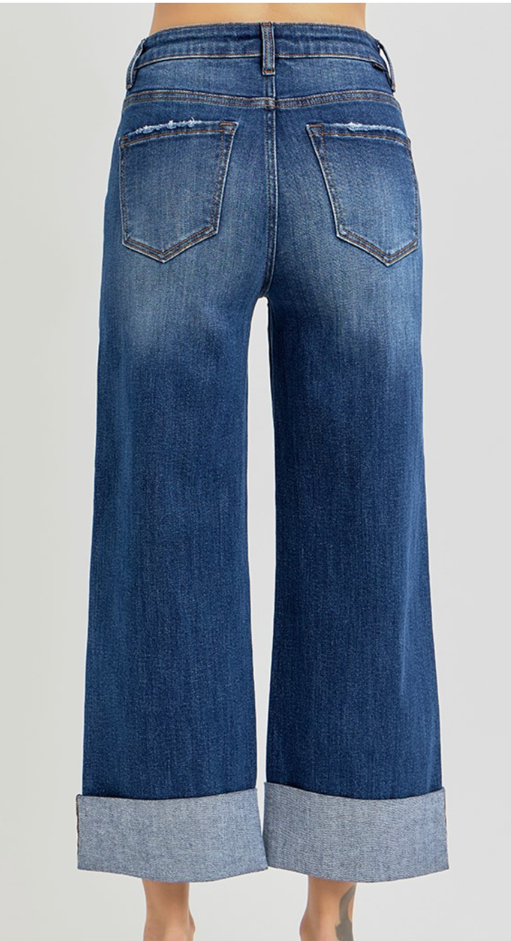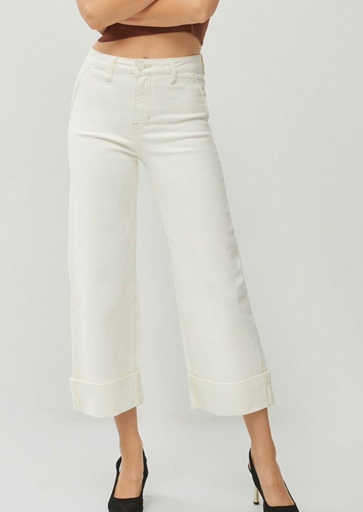 HIGH RISE WIDE LEG WITH CUFFED PANTS