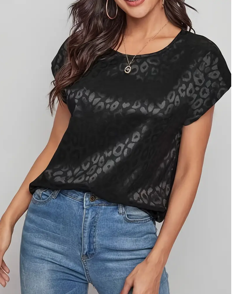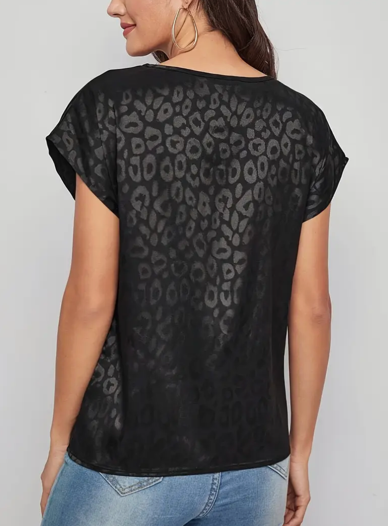 LEOPARD PRINT SATIN S/SLV TOP