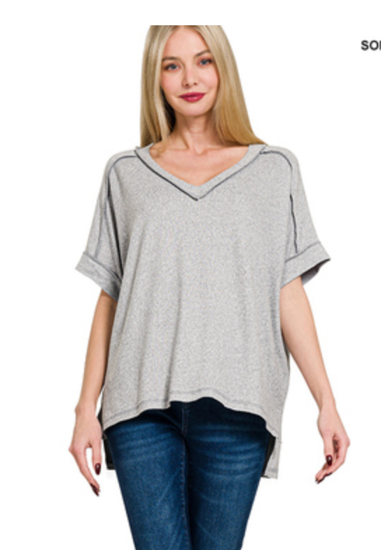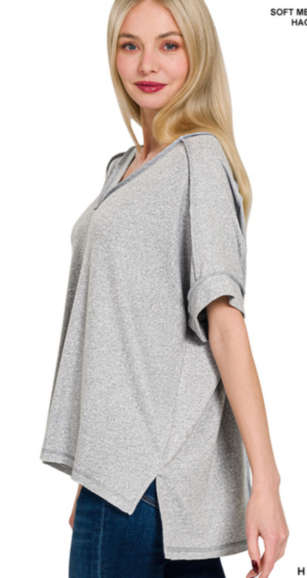 SOFT MELANGE HACCI V-NECK SHORT SLEEVE HI-LOW TEE