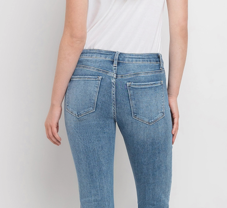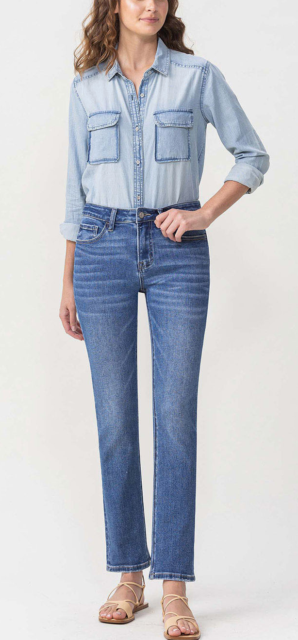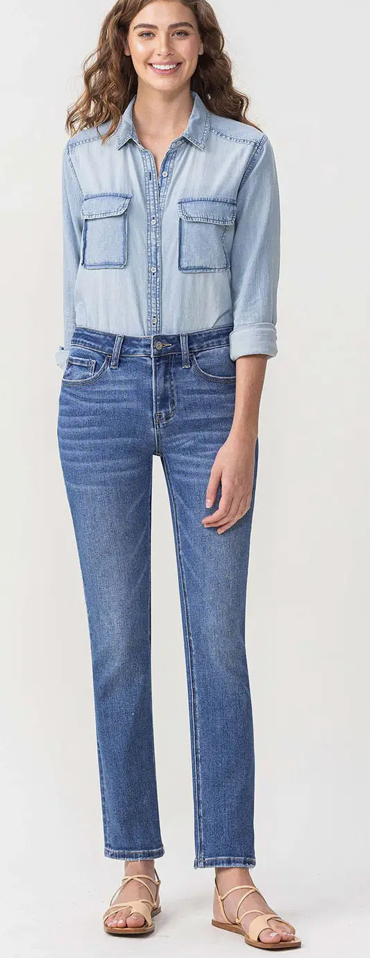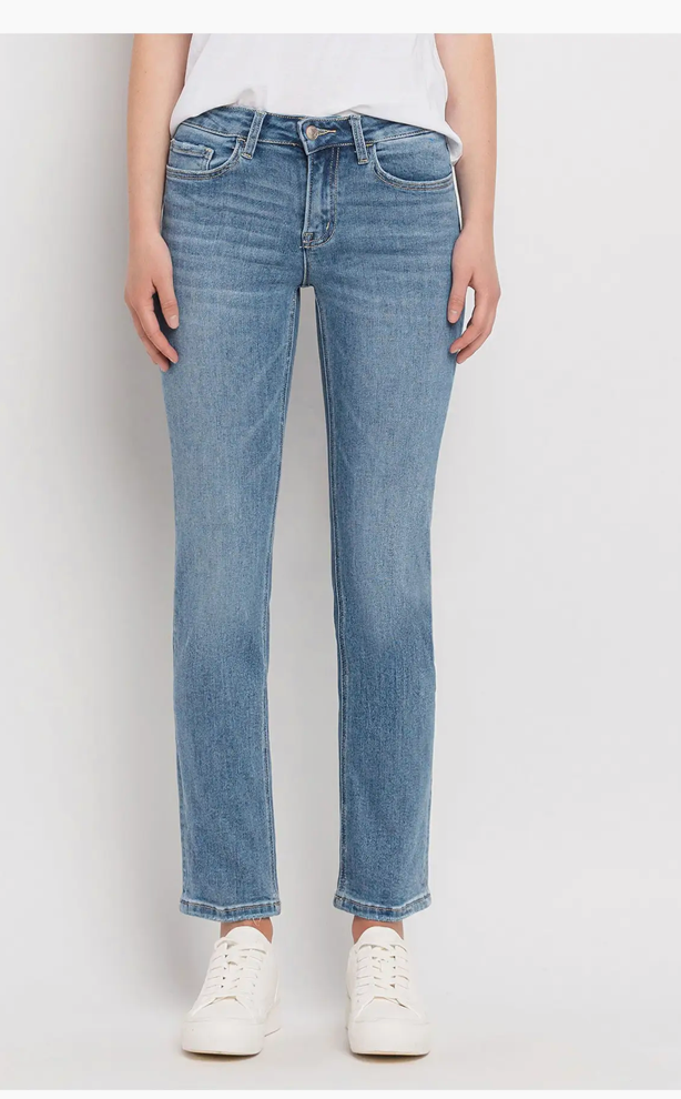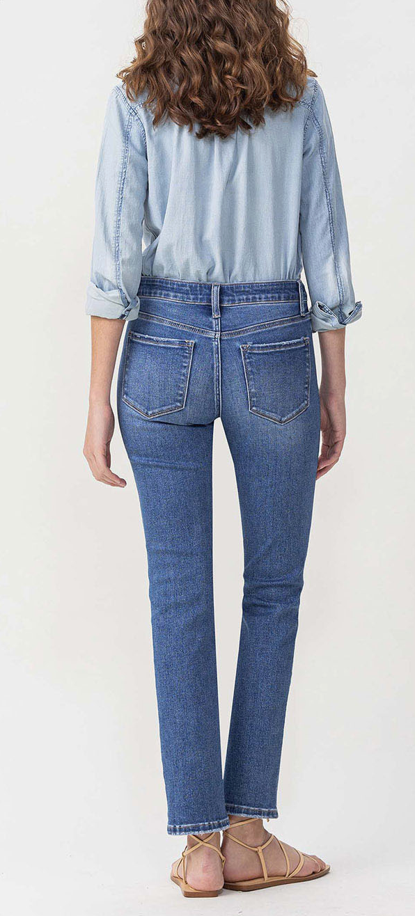 COMFORT STRETCH DENIM, MID RISE WAIST, ANKLE LENGTH, SLIM STRAIGHT JEANS