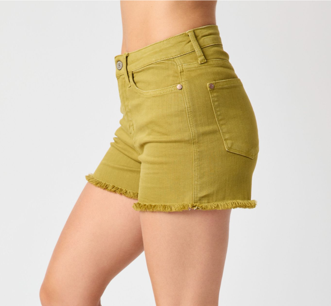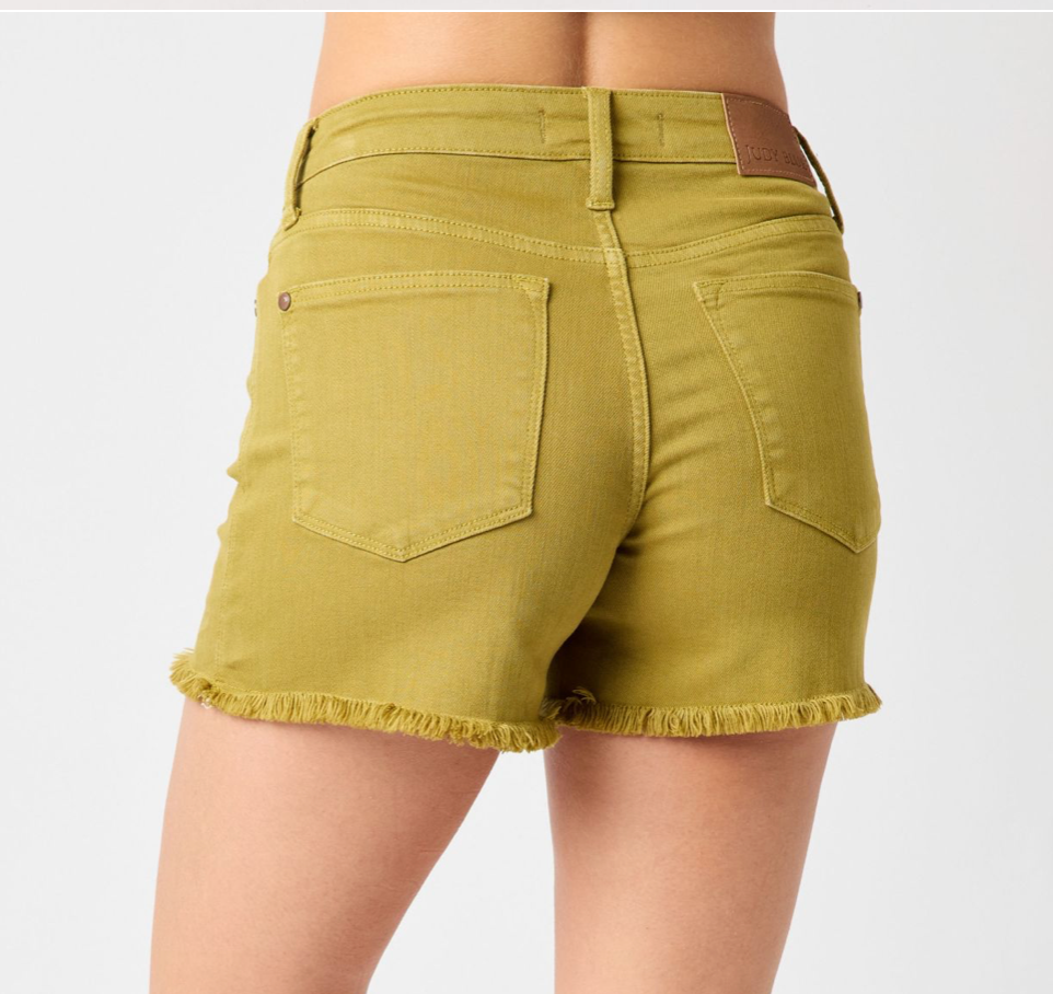 Mid-Rise Garment Dyed Fray Hem Shorts