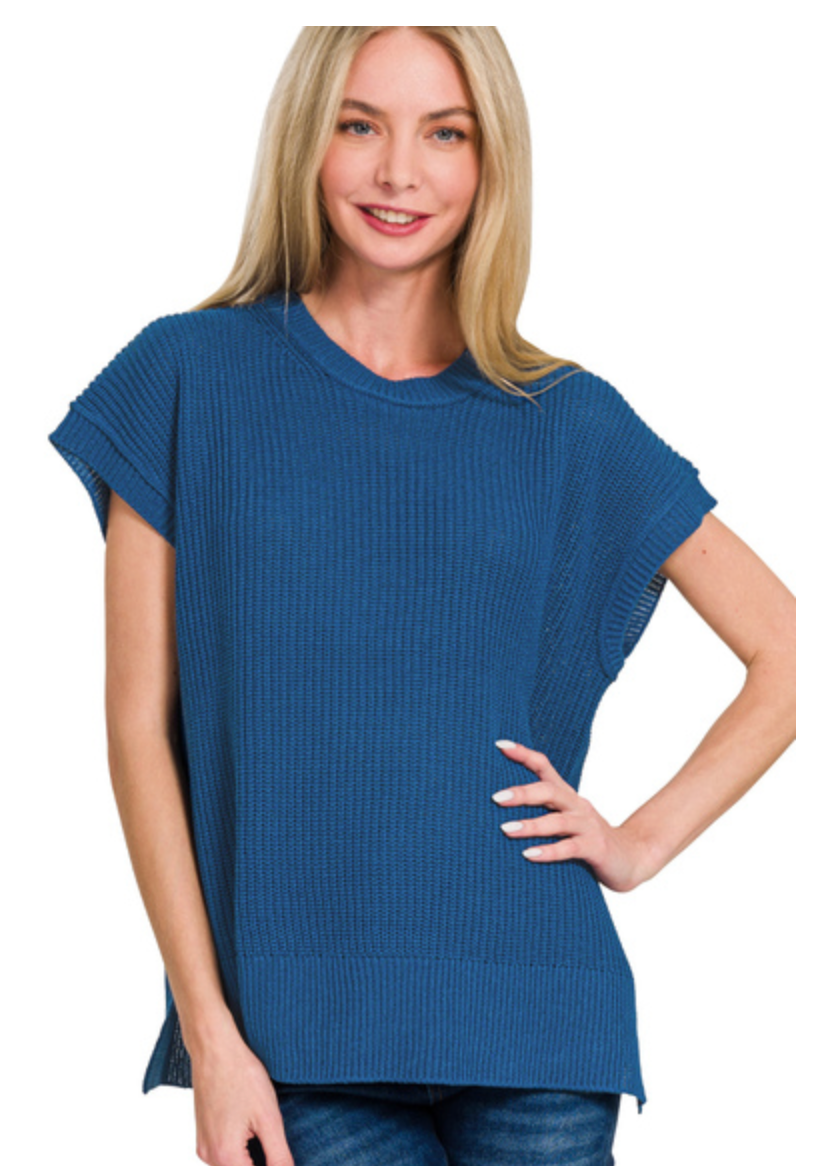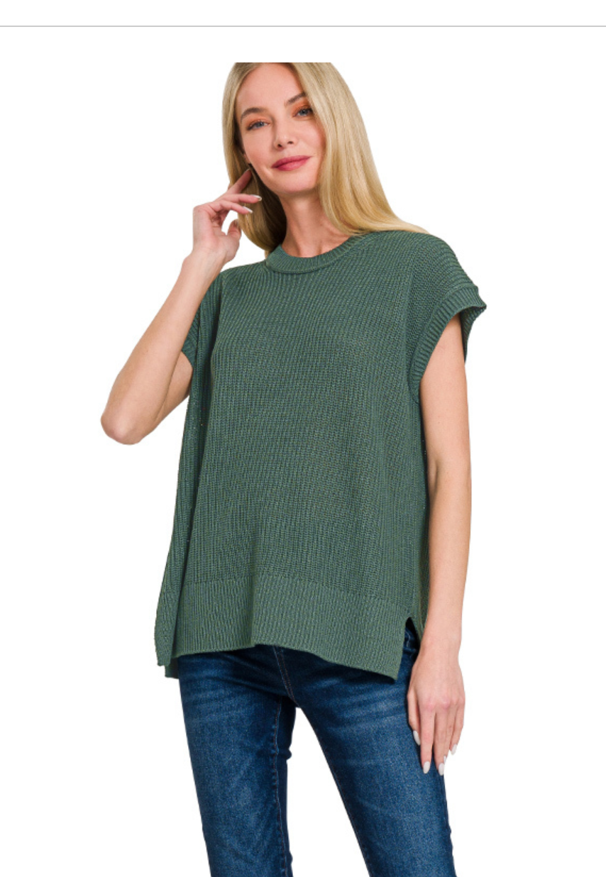 OVERSIZED CREW NECK SWEATER VEST -SIDE SLITS 2508 TOTAL BODY LENGTH: 23.75", CHEST: 44" approx. - MEASURED FROM SMALL 100% acrylic