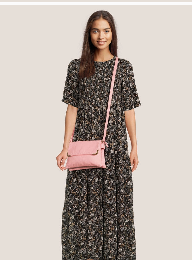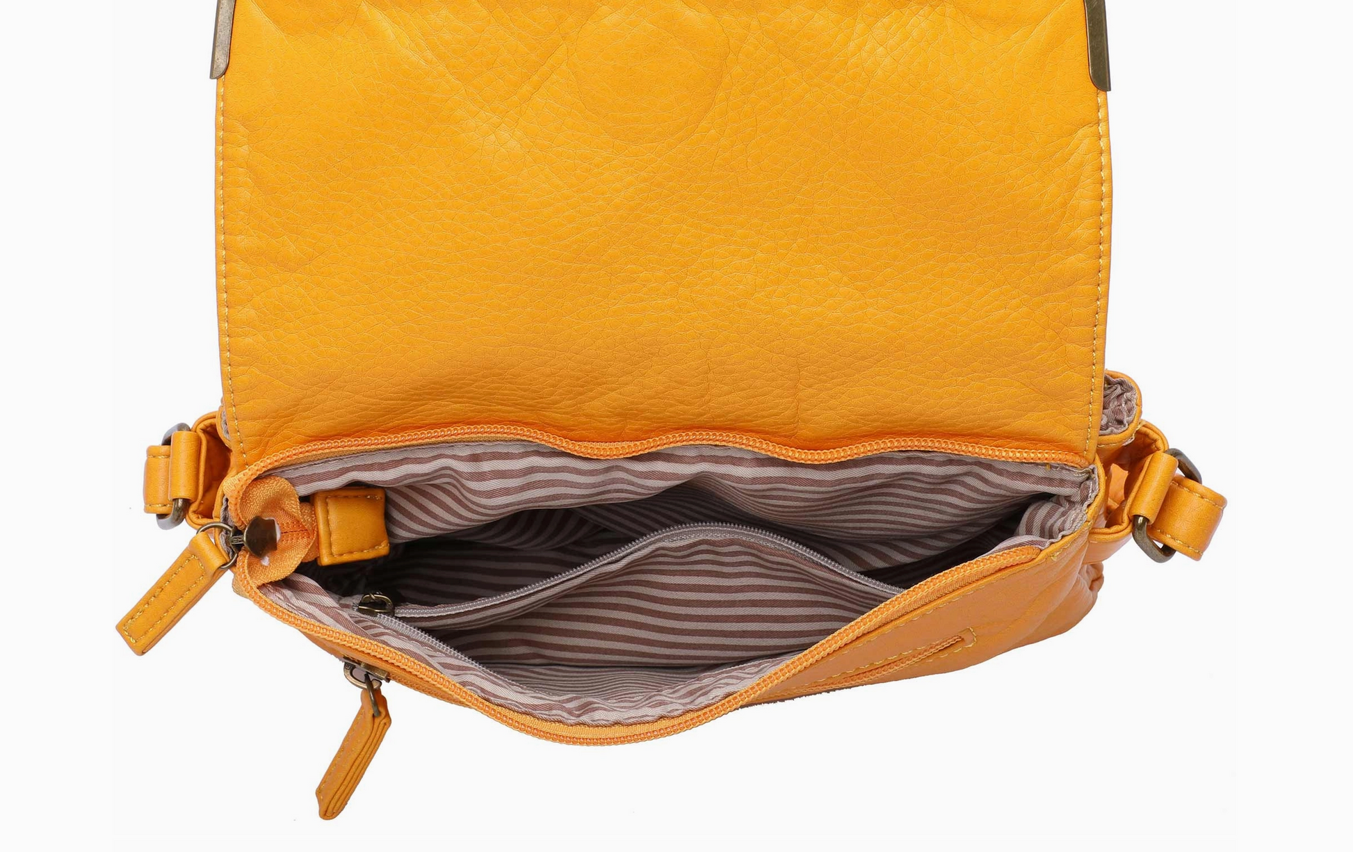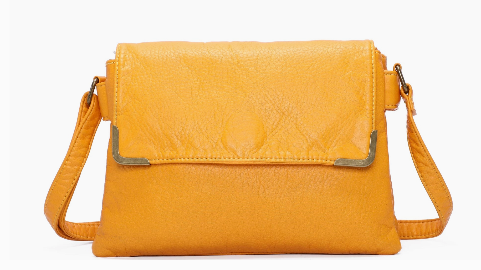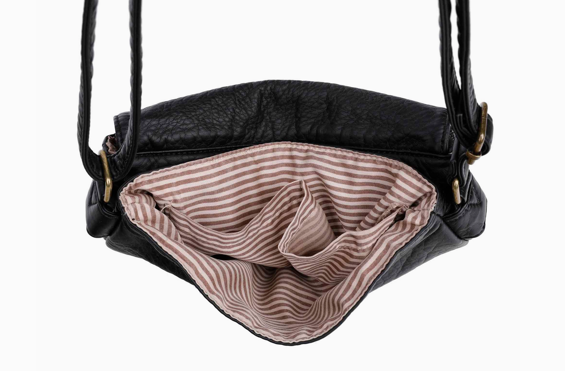 The Paige crossbody bag is made from soft vegan faux leather and features a medium sized shape with multiple storage pockets. Subtle hardware accents and an adjustable strap that can be carried over the shoulder or slung across the body for hands-free travel. This handbag has a roomy main compartment with a zip top closure and a fully lined interior that offers plenty of storage for all of your day to day essentials. Dimension: 10" L x 6.5" H x 2" W.