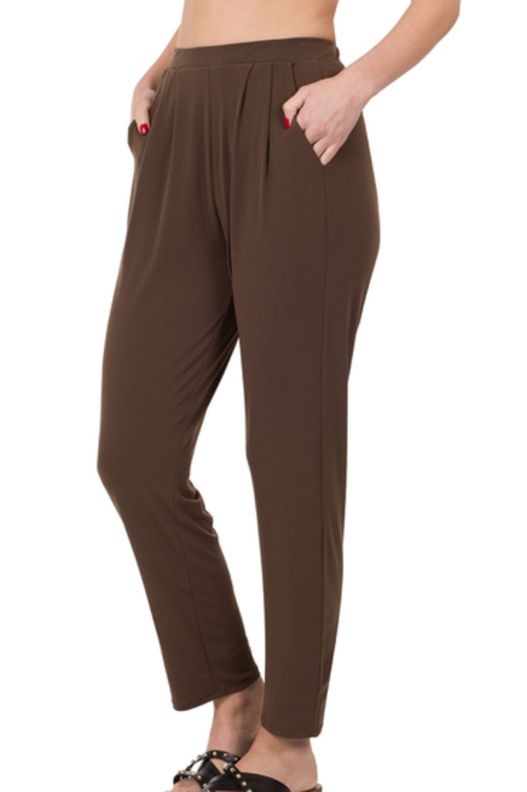 7/8-LENGTH ITY PLEATED WAIST PANTS WITH SIDE POCKETS