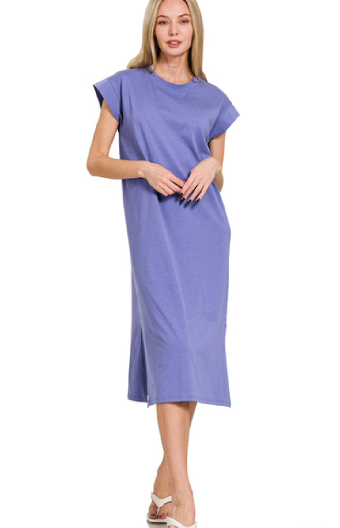 ROUND NECK SHORT SLEEVE MIDI DRESS