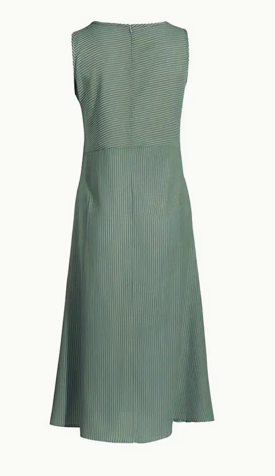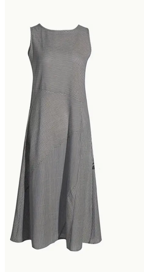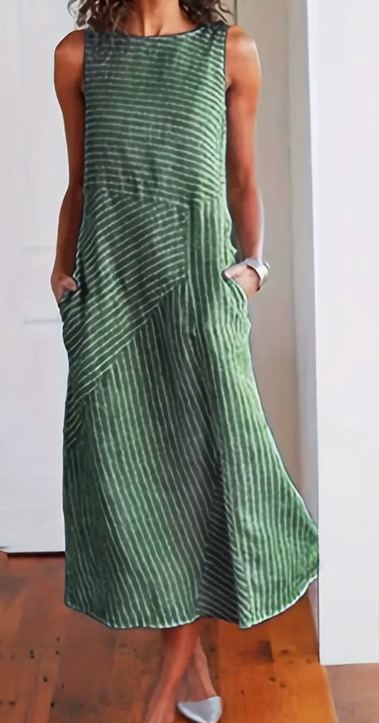 Striped Tank Dress Round Neck Sleeveless Midi Dress with Pockets