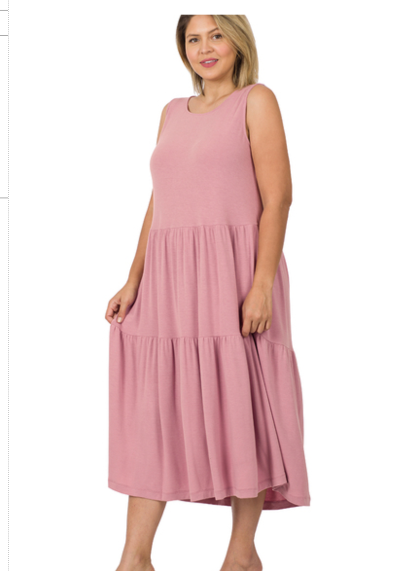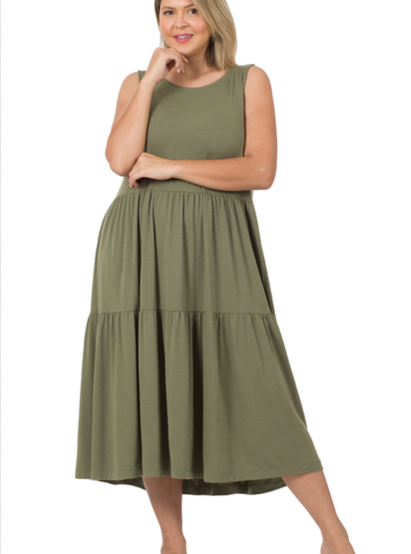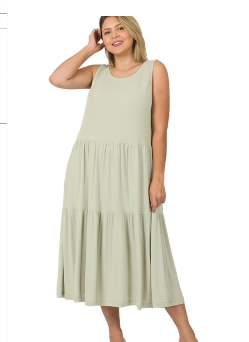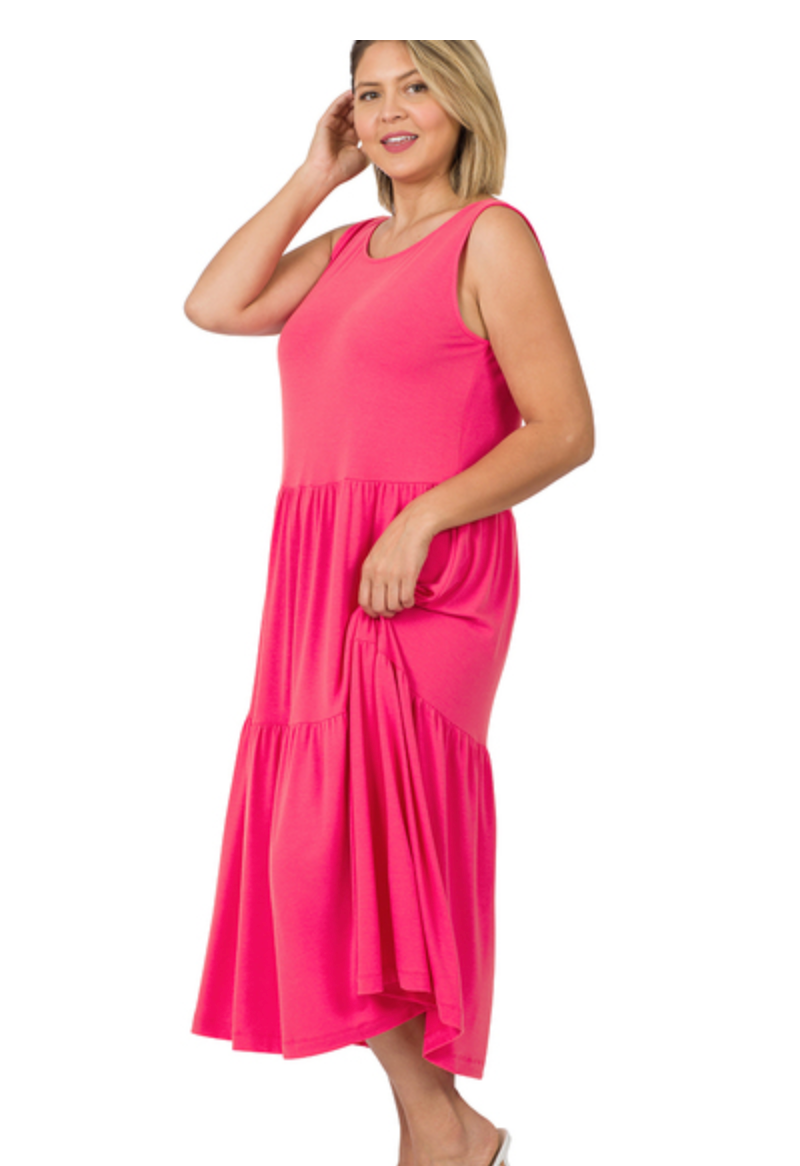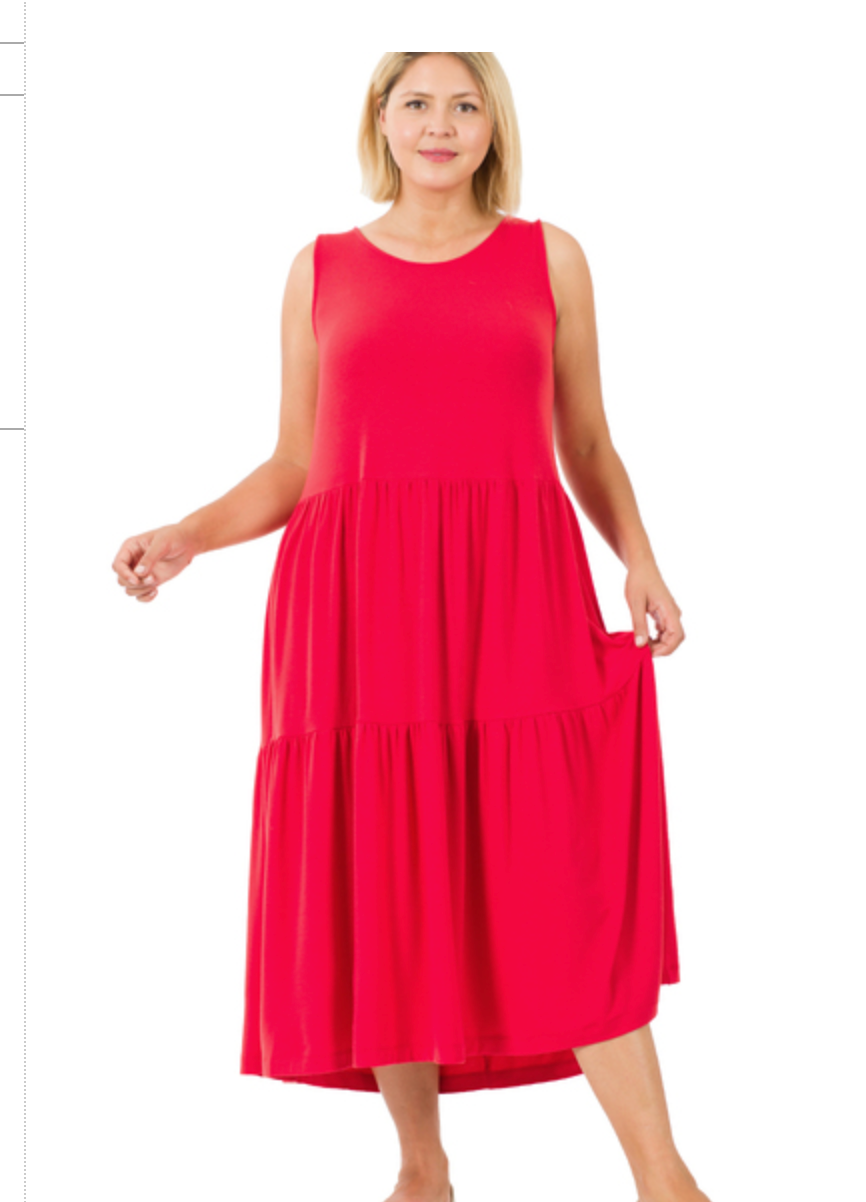 PLUS SLEEVELESS TIERED MIDI DRESS