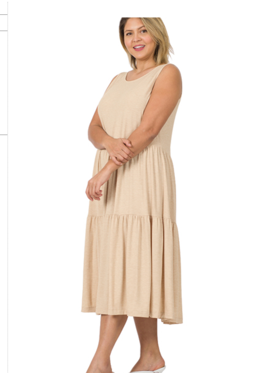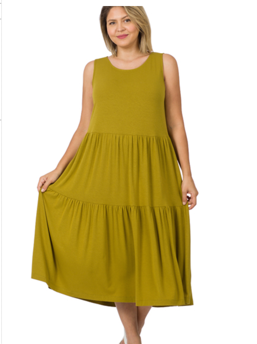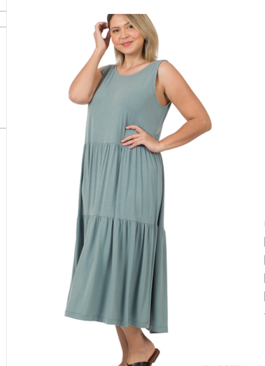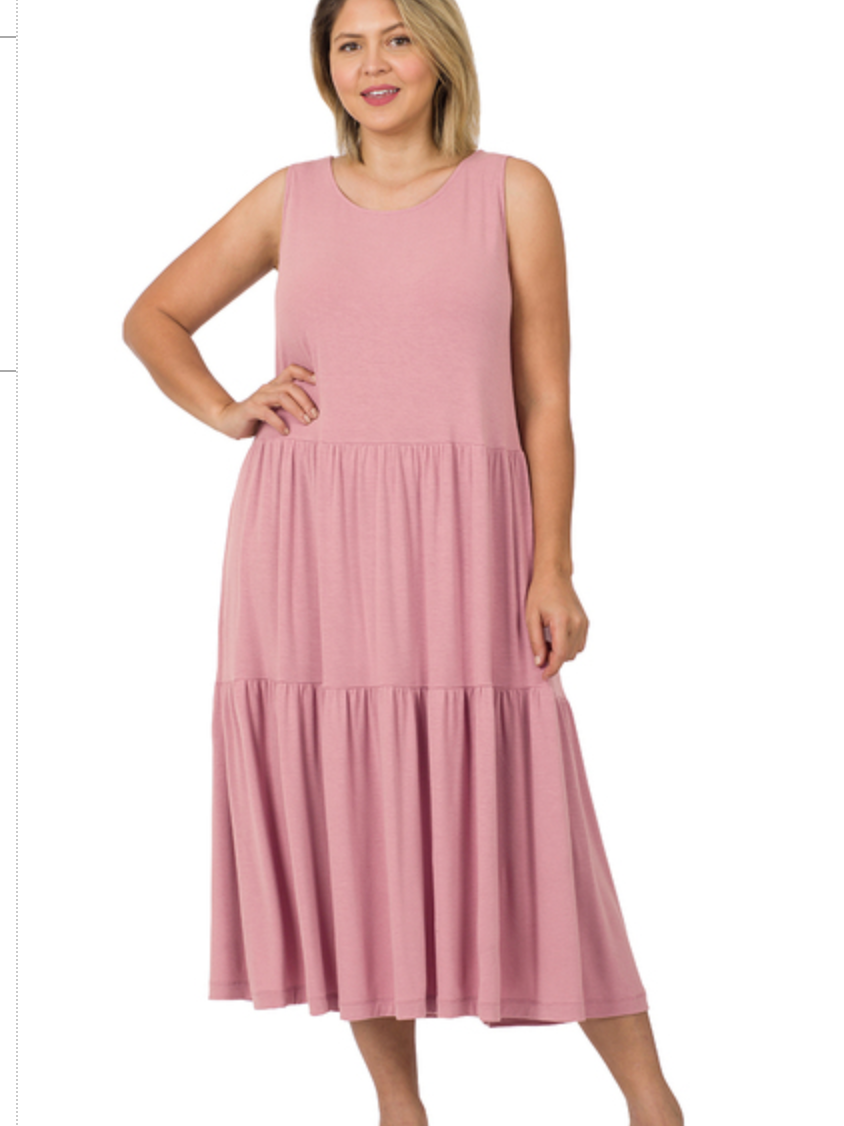 PLUS SLEEVELESS TIERED MIDI DRESS