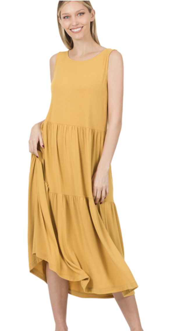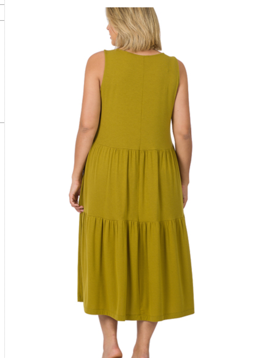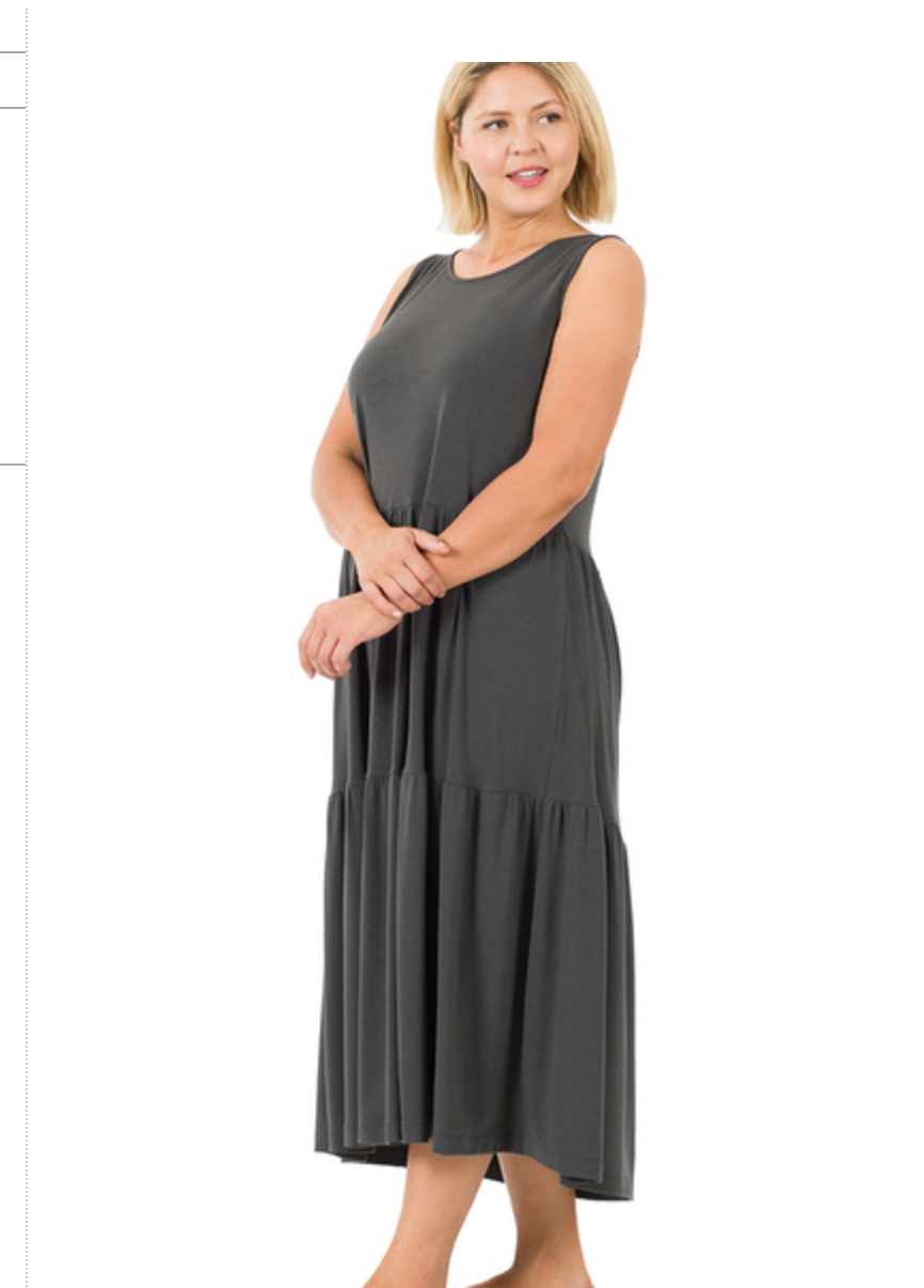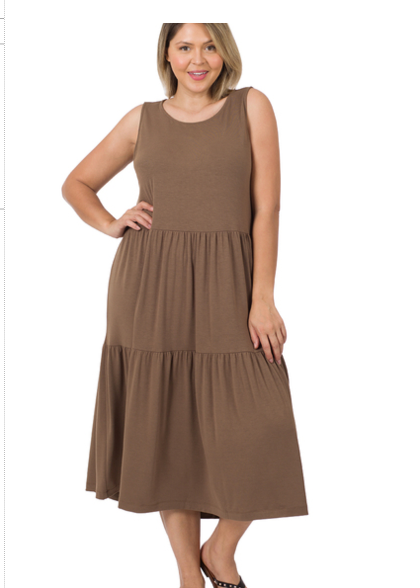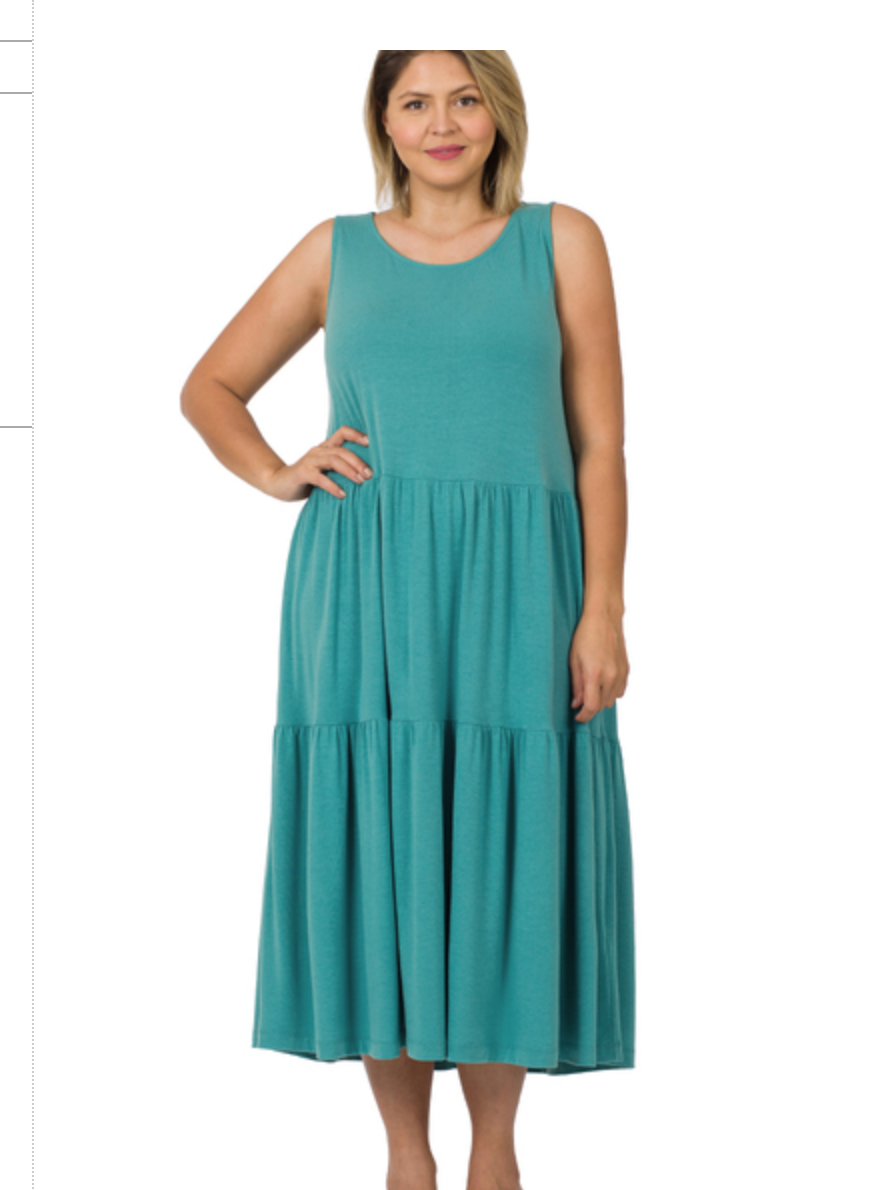PLUS SLEEVELESS TIERED MIDI DRESS