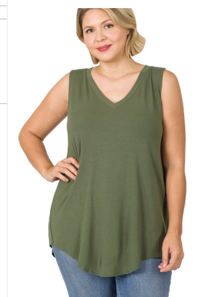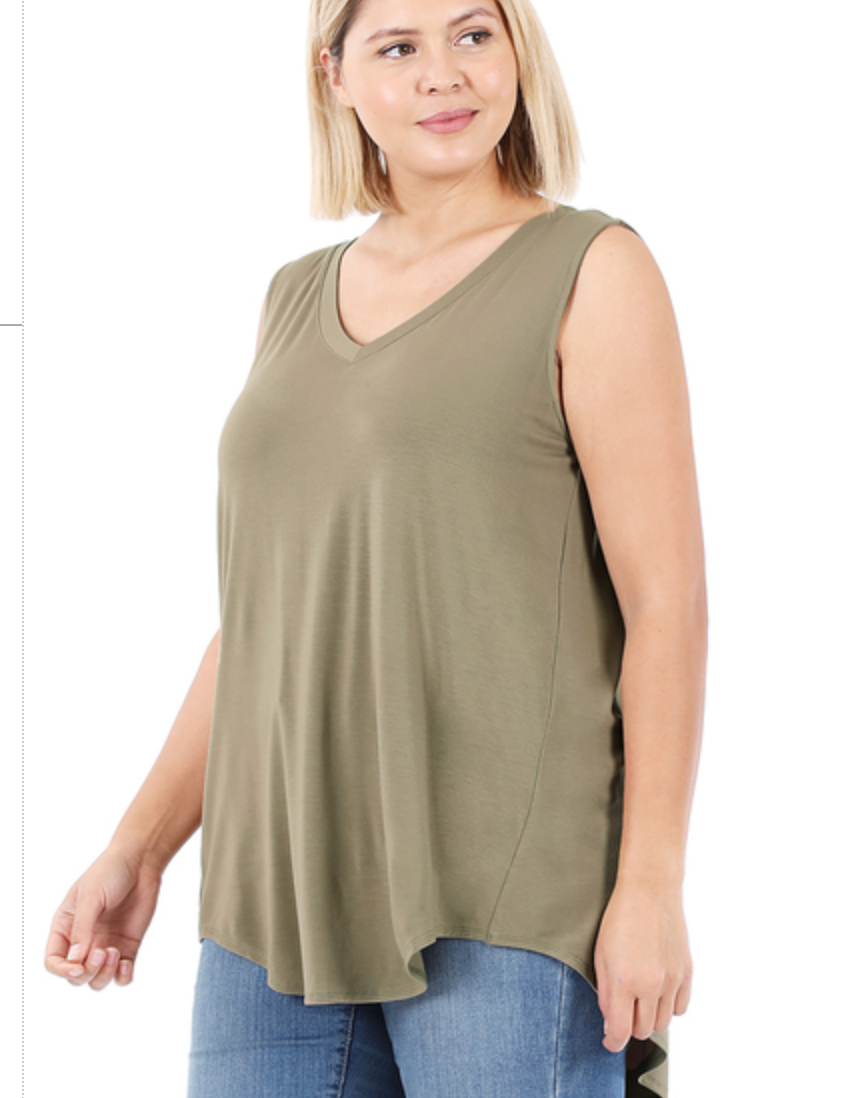 LUXE RAYON SLEEVELESS V-NECK HI-LOW HEM TOP