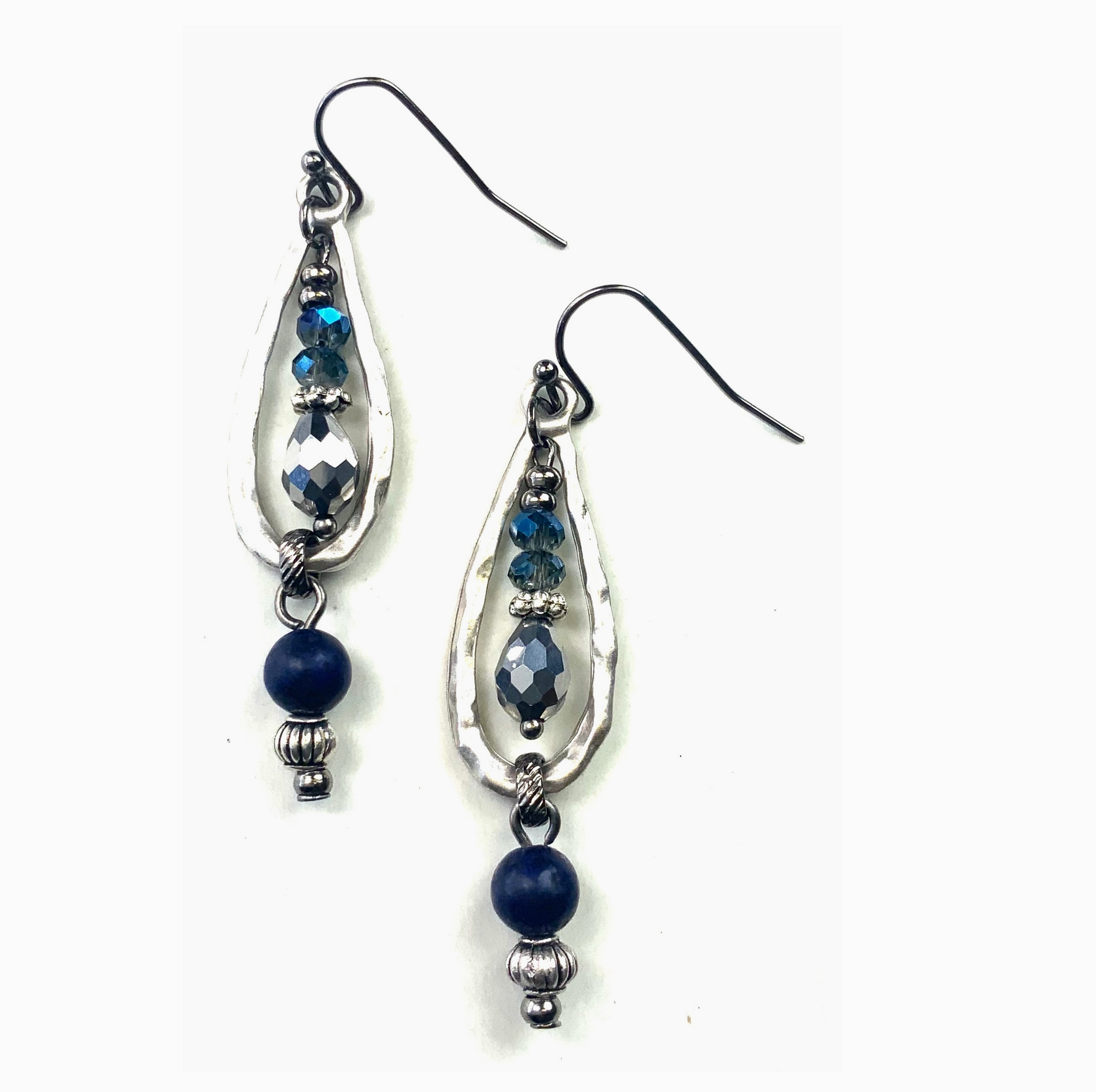 small Hammered Teardrop with Beaded Dangles