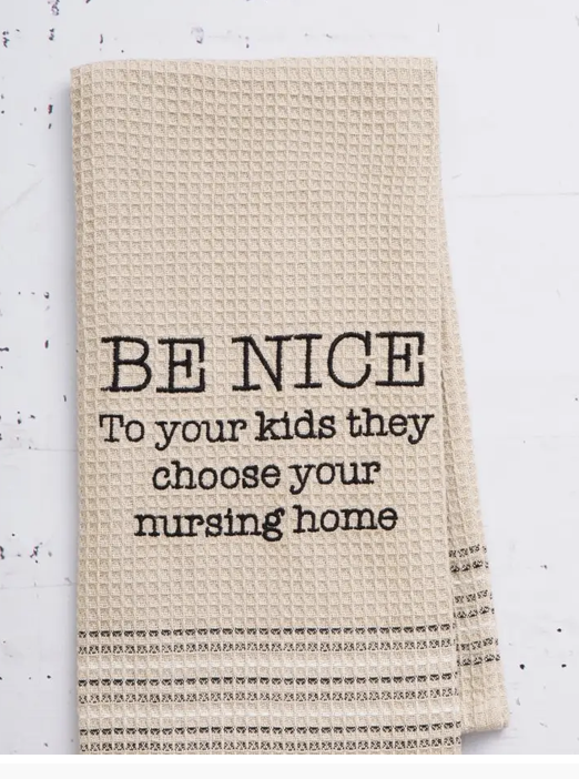 Short Description: Laugh your hands off with dry wit towels. This all-cotton, super-absorbent dishtowels are beautifully embroidered. Machine wash, tumble dry low.